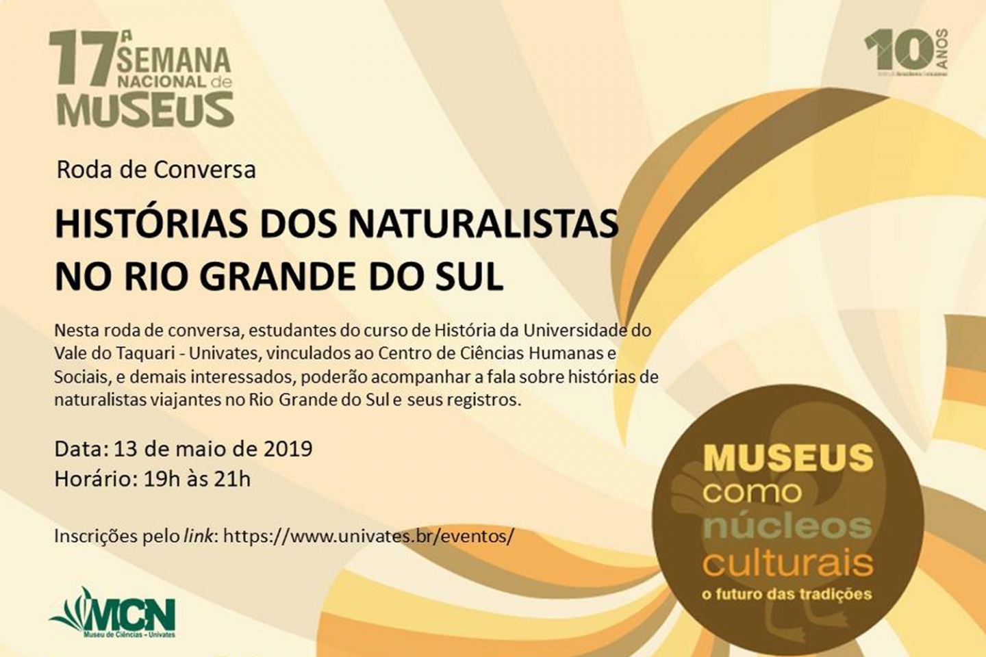 A Roda de Conversa acontece na sala 100 do Prédio 8, das 19h às 21h. Destinada aos estudantes do curso de História e demais interessados, são oferecidas 40 vagas e as inscrições são gratuitas. Mais informações podem ser obtidas pelo e-mail mcn@univates.br.