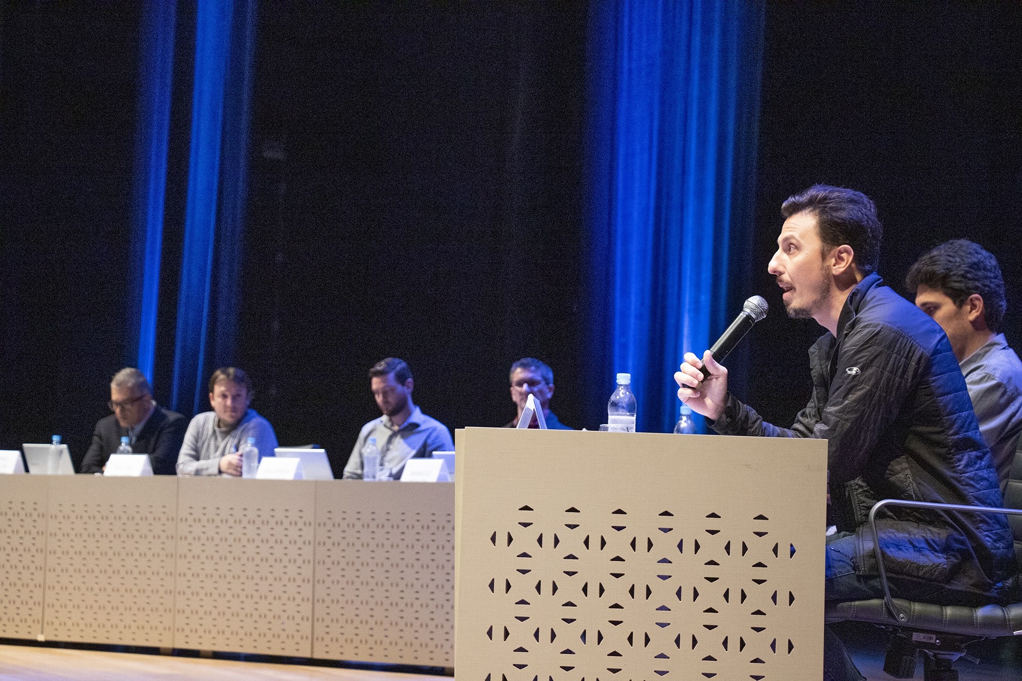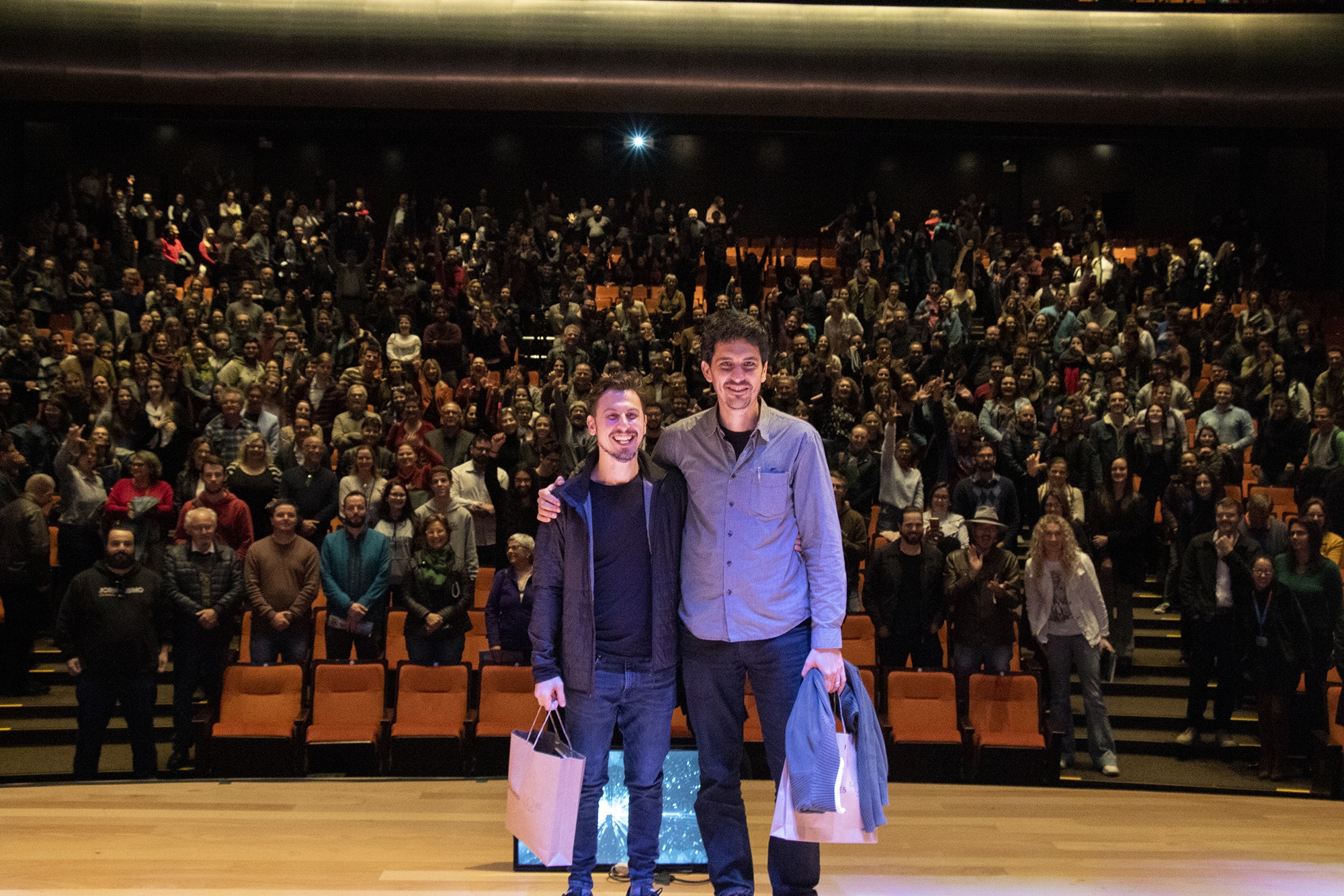 Com o Teatro Univates lotado e transmissão ao vivo pela TV Univates, os jornalistas Leandro Demori e Alexandre De Santi, editor executivo e editor do site The Intercept Brasil, respectivamente, foram recebidos para falar sobre jornalismo investigativo nesta quarta-feira, dia 18. O The Intercept Brasil é uma agência de notícias independente que realiza investigações jornalísticas aprofundadas e análises sobre política, corrupção, meio ambiente, segurança pública, tecnologia e mídia. Os profissionais dividiram o palco com os jornalistas Filipe Faleiro, do jornal A Hora, Marcio Souza, do jornal O Informativo, Ricardo Sander, do grupo Independente, e Leonel José de Oliveira, professor do curso de Jornalismo e coordenador do Centro de Ciências Humanas e Sociais (CCHS) da Univates.