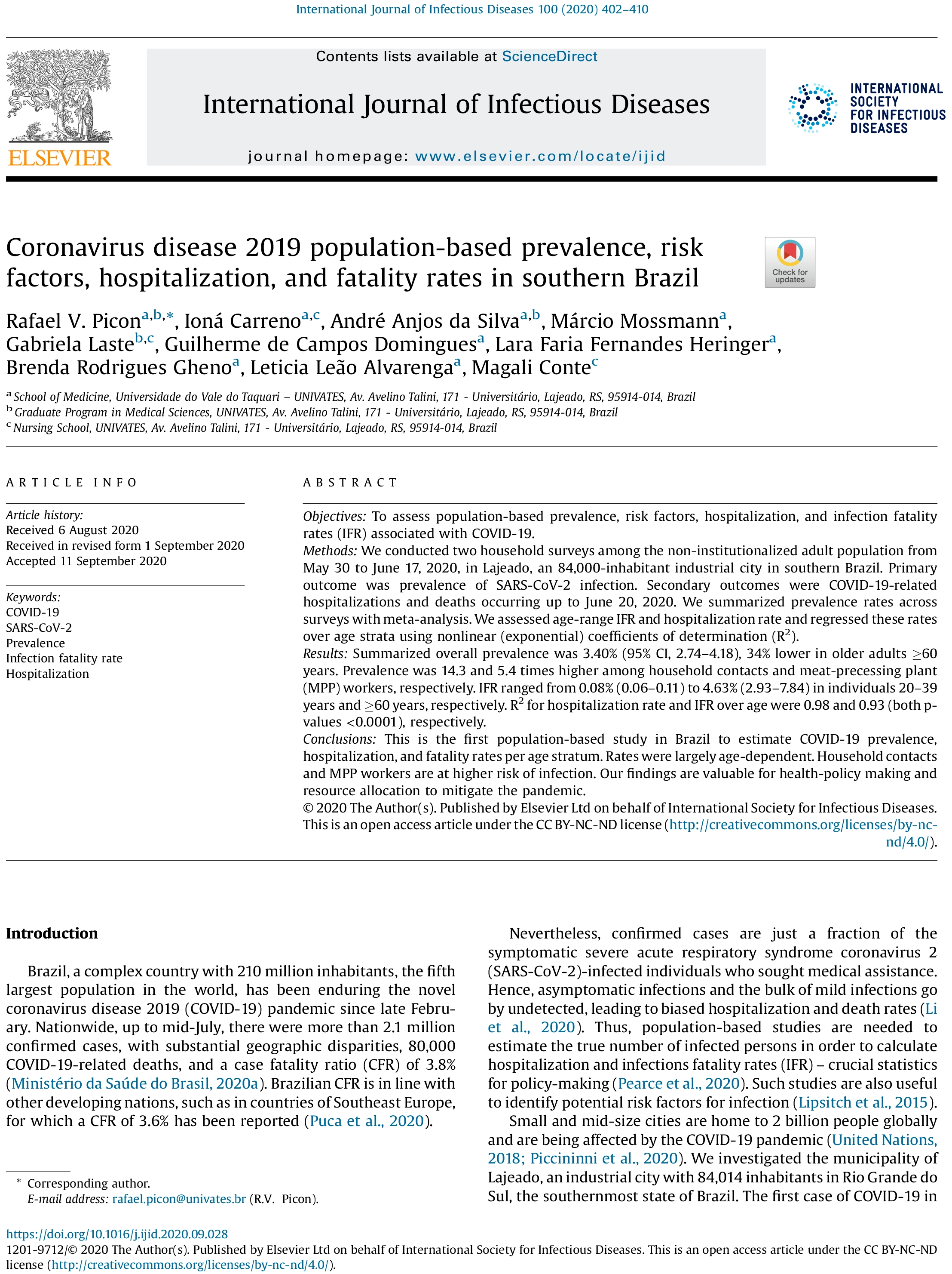 De acordo com o professor, os resultados obtidos são inéditos e muito importantes para determinar as características do vírus. “Este é o primeiro estudo de base populacional no Brasil a estimar a taxa de hospitalizações e letalidade da Covid-19 por faixa etária. Esses achados são de grande valor para a formulação de políticas de saúde e alocação de recursos para mitigar a pandemia”, relata.