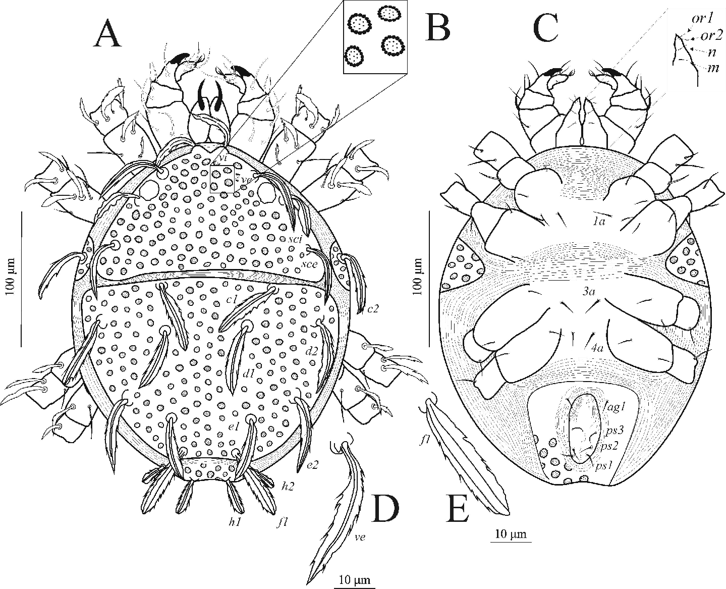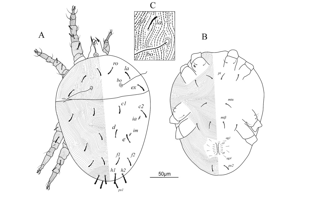 Nesse momento, outra etapa inicia. É a descrição e medição minuciosa das características anatômicas e morfológicas dos animais estudados. São descritas a disposição de setas em cada segmento da perna (quetotaxia), as medidas de todas as partes corporais do indivíduo e como é organizado o órgão genital (quantas setas possui e quais são suas respectivas medidas). Como ácaros são animais muito pequenos, um desenho fiel dos exemplares é realizado de acordo com um padrão aceito para a descrição e a representação das espécies da família Stigmaeidae.