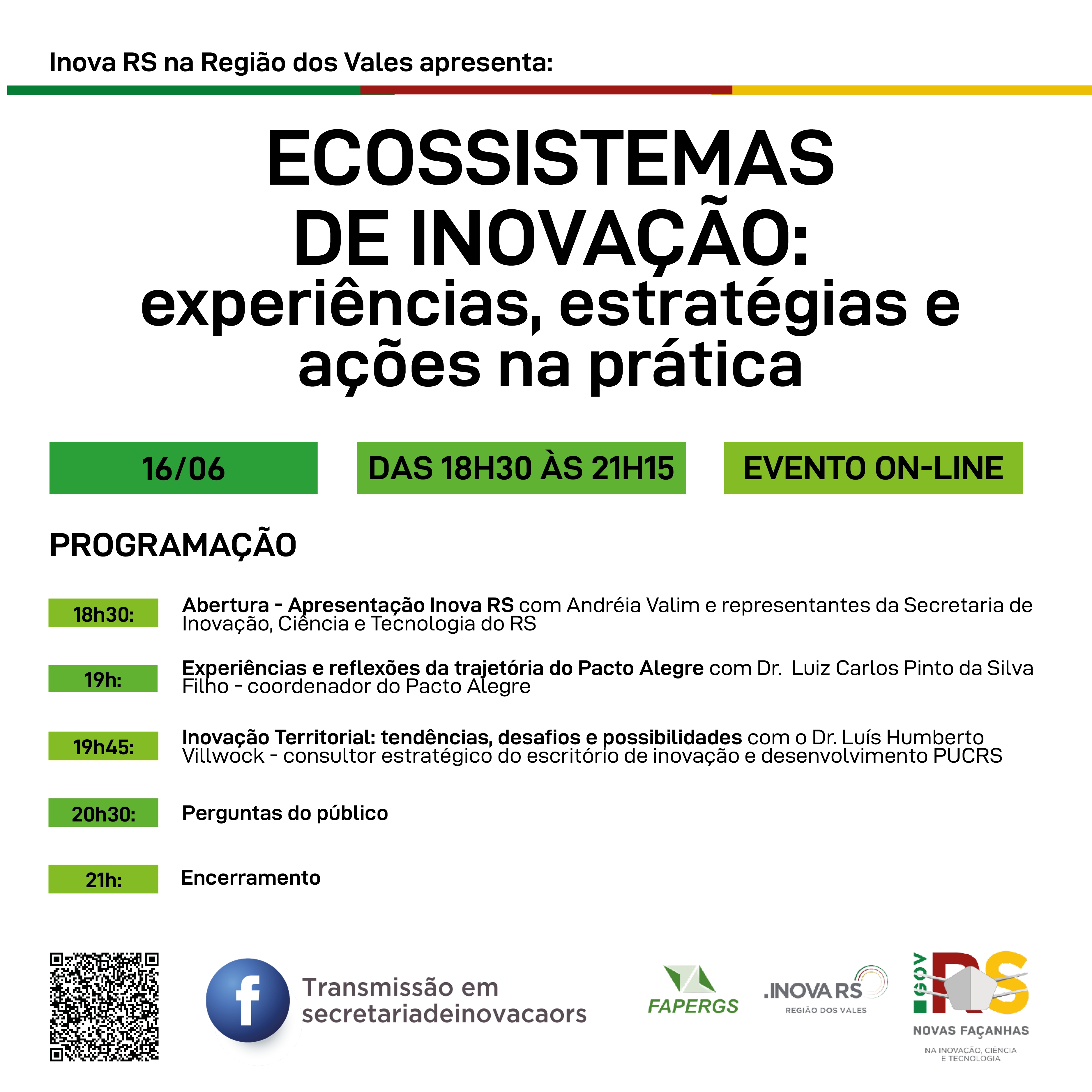 18h30min: Abertura - Apresentação Inova RS com Andréia Valim e representantes da Sict/RS