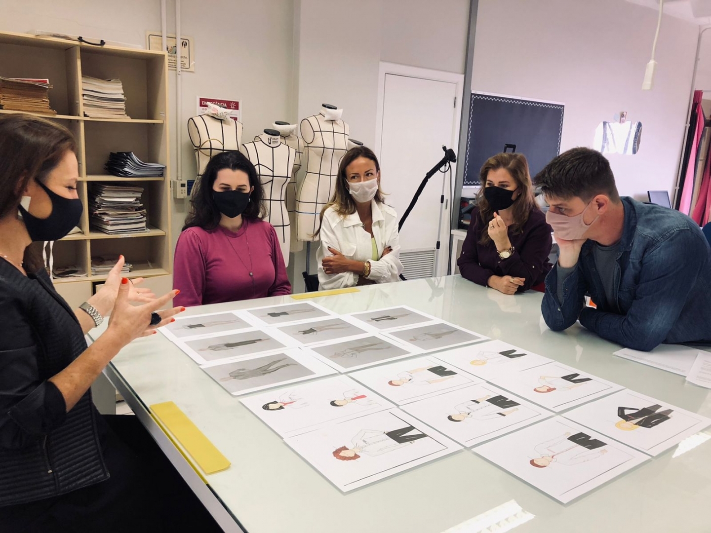Participaram da comissão julgadora o professor do curso de Design de Moda e coordenador do curso Técnico em Modelagem do Vestuário, Cristian Leandro Metz, a profissional e consultora de moda Patrícia Herrmann, a diretora da Costaneira Acabamentos, Catiana Muller, e a vice-presidente da empresa, Caroline Muller, acompanhadas de sua convidada para avaliar os trabalhos, Cláudia Rossi.
