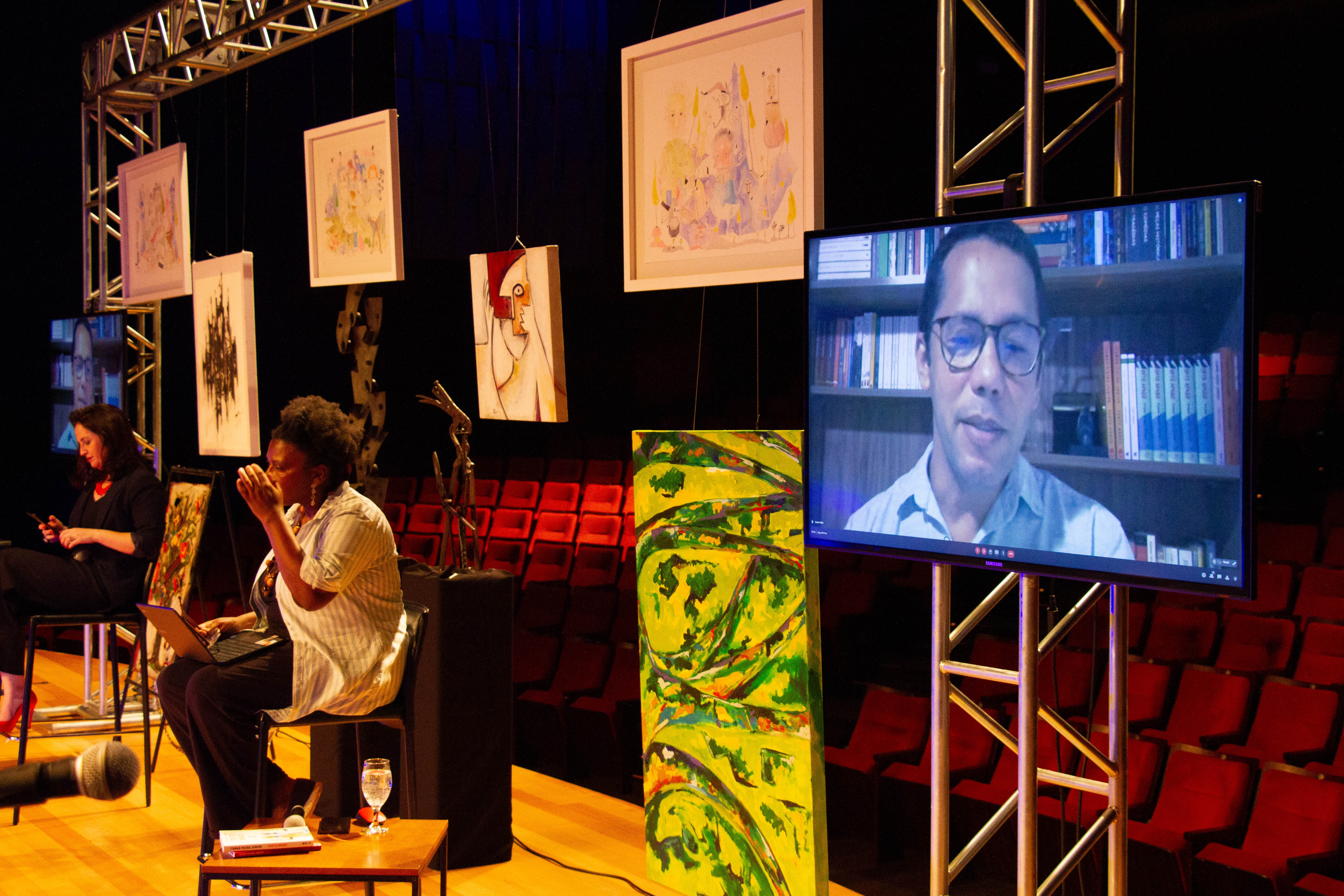 Vieira Junior é ganhador do Prêmio LeYa de 2018, do Prêmio Jabuti de 2020 e do Prêmio Oceanos de 2020. O escritor elaborou suas obras a partir de suas observações, experiências e cotidiano. Ao longo de sua fala também abordou o processo de criação de suas obras literárias, que demandaram envolvimento com a narrativa e com os personagens reais que motivaram suas criações. “A leitura é uma experiência íntima que possibilita uma troca de experiências imensa e também que sejamos tocados por sentimentos”.
