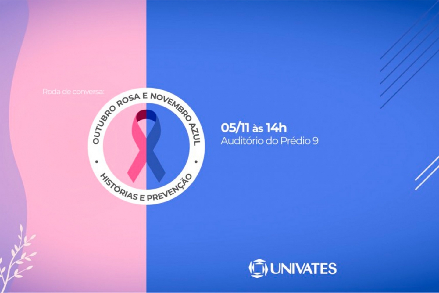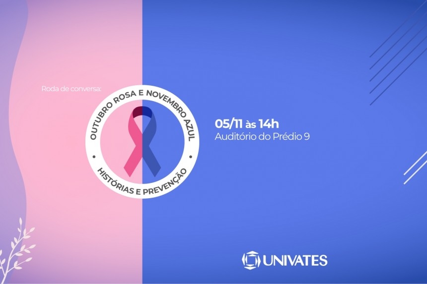 A Universidade do Vale do Taquari - Univates realiza, no dia 5 de novembro, a partir das 14h, uma roda de conversa em alusão ao Outubro Rosa e ao Novembro Azul, campanhas de conscientização sobre o câncer de mama e doenças masculinas, respectivamente.