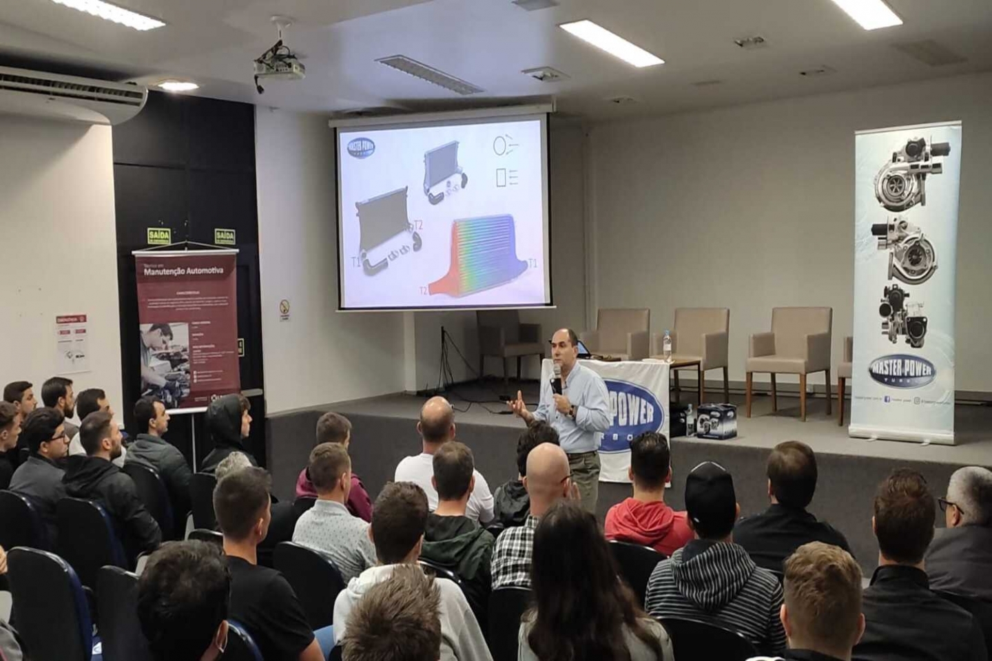 Promovida pelos cursos Técnico em Manutenção Automotiva e em Mecânica, a palestra foi ministrada pelo consultor da empresa Master Power, Márcio Cattani, que é responsável também pelo acompanhamento do mercado, assistência técnica, desenvolvimento de soluções e treinamentos na empresa.