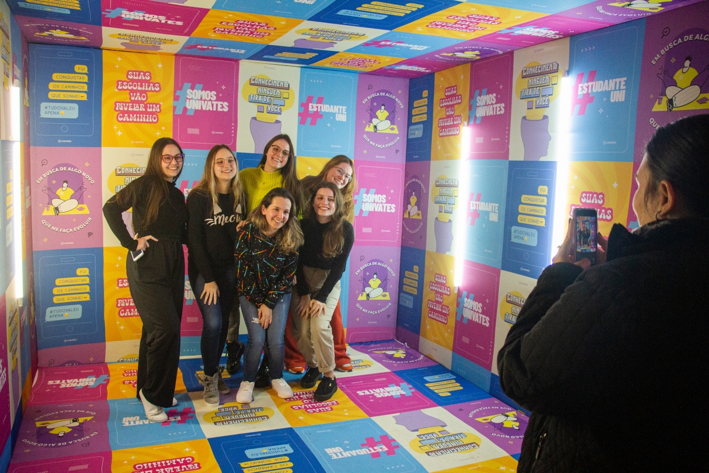 Ainda, ao lado do palco, foi montado um espaço fotográfico especial e colorido para que as pessoas pudessem registrar esse momento. Quem publicou a fotografia nas redes sociais utilizando a hashtag #EstudanteUni pôde levar para casa a recordação impressa.