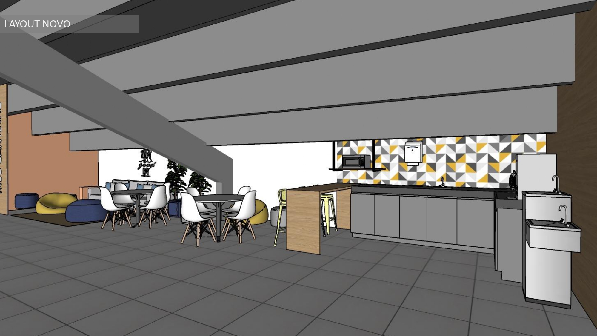 O projeto prevê um espaço com sofás, puffs, mesas e cadeiras e cozinha com pia, microondas e água quente. A expectativa é que a nova área esteja pronta até o primeiro semestre de 2023.