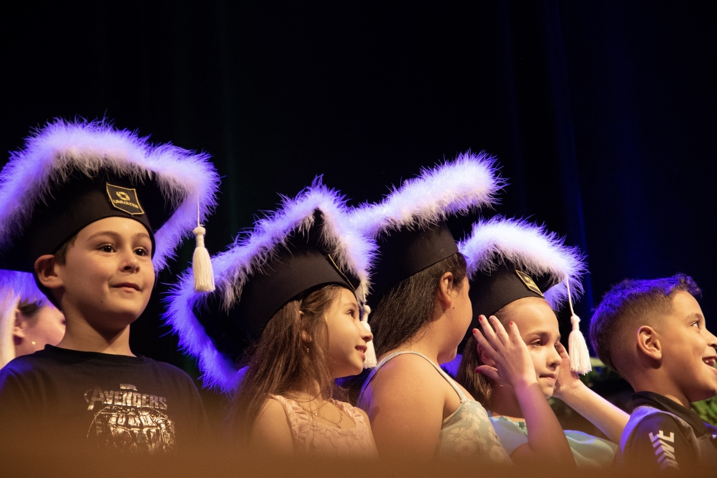 A cerimônia marcou a formatura simbólica dos alunos, que foram chamados ao palco conforme as escolas em que estudam. Cada um recebeu um capelo ? o tradicional nas formaturas de Ensino Superior ? e posou para fotos.