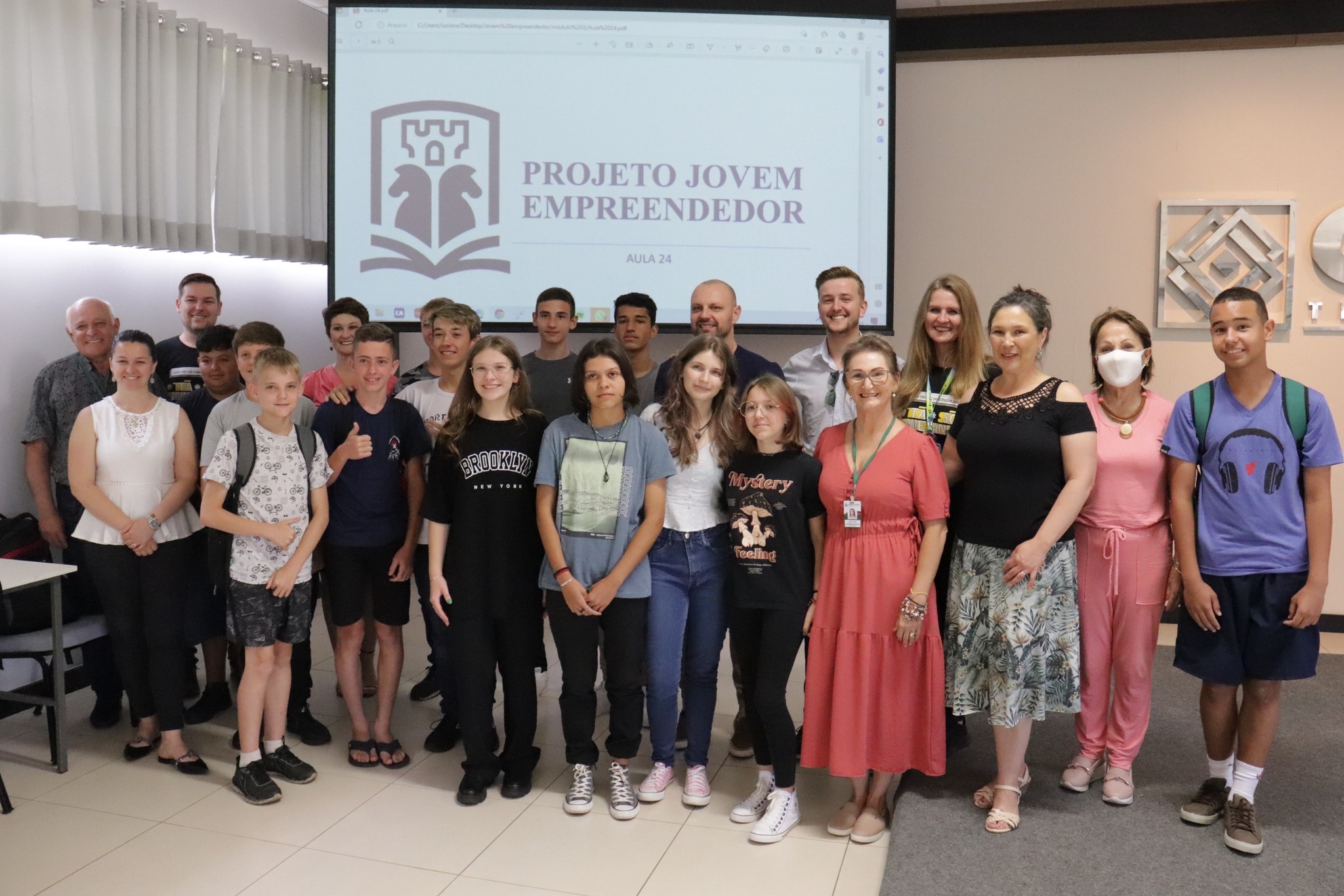Na terça-feira, dia 29 de novembro, alunos do projeto Jovem Empreendedor apresentaram os trabalhos desenvolvidos ao longo do ano. Foram 15 alunos no turno da manhã e 32 no turno da tarde. Os estudantes integram a rede municipal de ensino e estão no 8º e 9º ano.