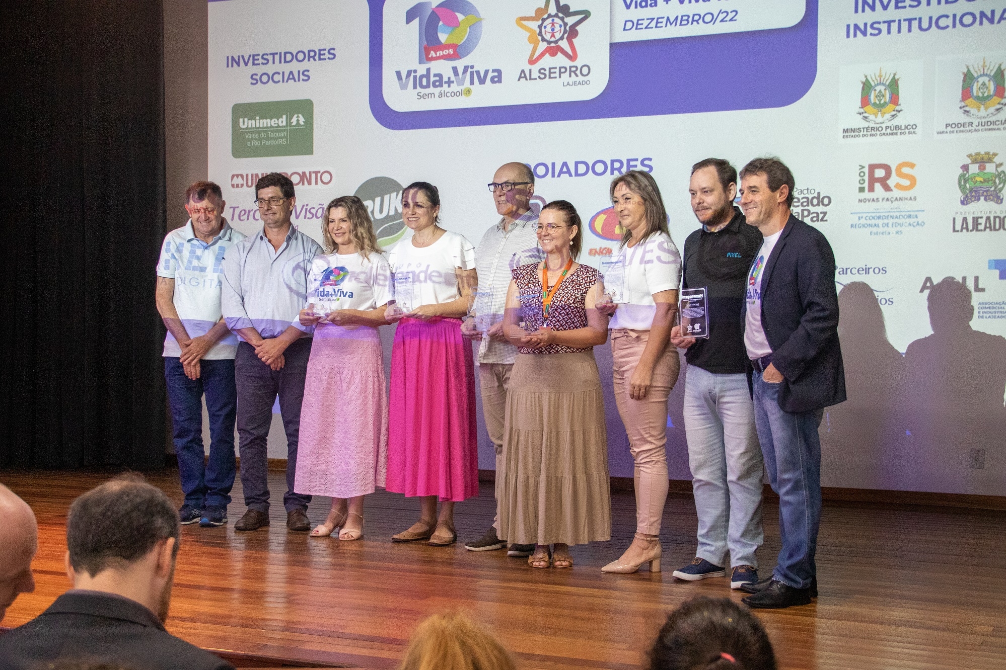 Em 2022, o programa Vida+Viva Sem Álcool (-) 18 anos completa uma década de atividades de prevenção e enfrentamento ao uso de álcool e de drogas ilícitas por crianças e adolescentes. O programa é executado pela Associação Lajeadense Pró-Segurança Pública (Alsepro), em parceria com órgãos e entidades públicos e privados. Na manhã da terça-feira, 6, lideranças, autoridades, professores e alunos de Lajeado participaram de um evento em comemoração ao aniversário da iniciativa. A programação ocorreu no Teatro do Sesc.