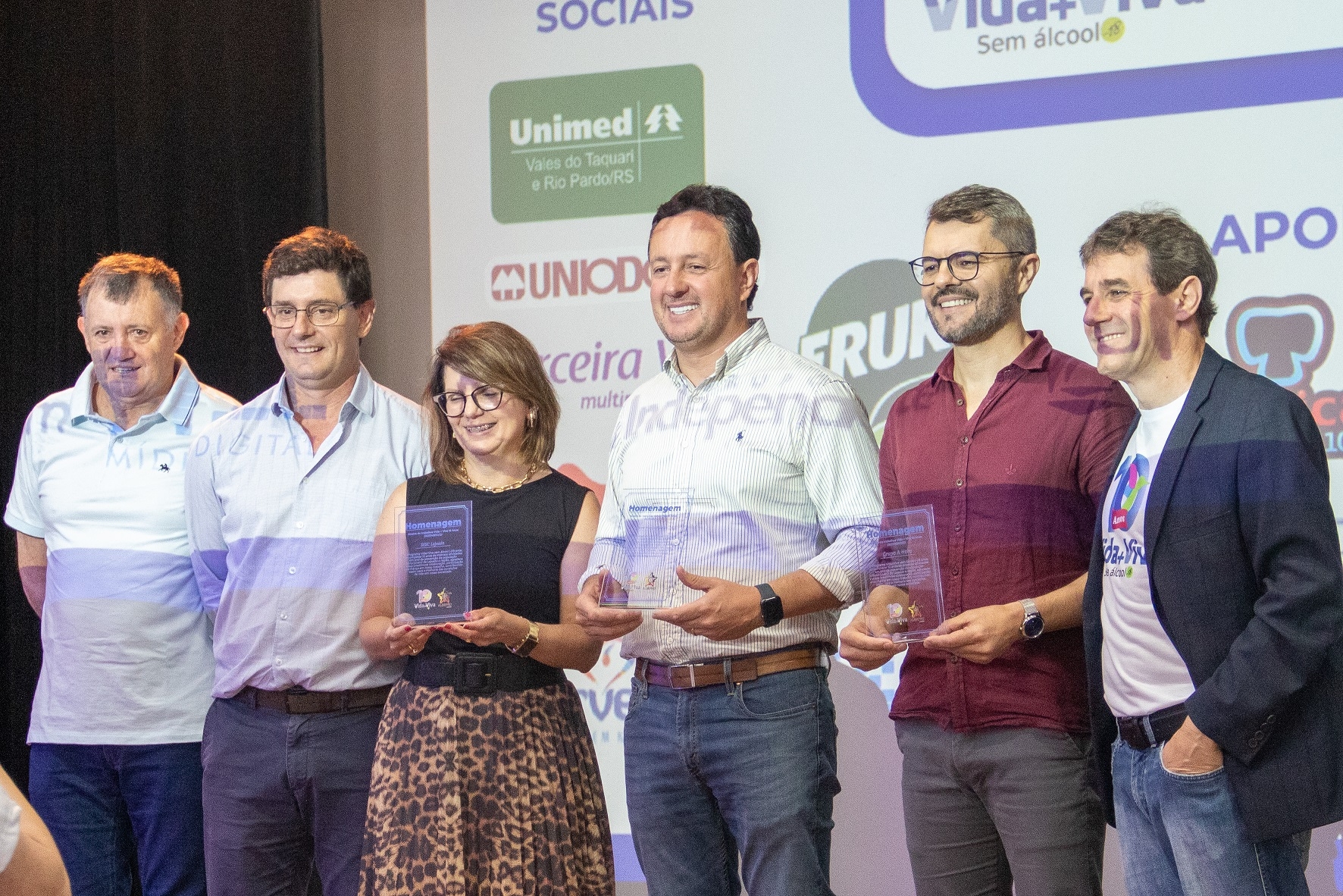 Durante o evento, foram entregues placas de homenagem a personalidades e instituições parceiras do programa. A Universidade do Vale do Taquari - Univates, por meio da reitora Evania Schneider, recebeu o reconhecimento como um dos investidores institucionais do Vida+Viva Sem Álcool (-) 18 anos. A Instituição é parceira do programa desde 2015.