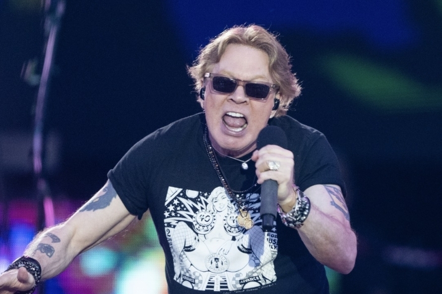Axl Rose leva tombo durante show do Guns N' Roses em Londres