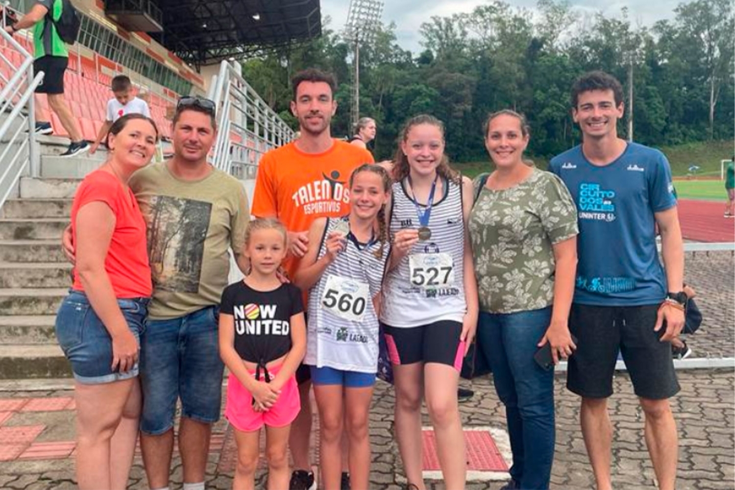 As duas atletas integraram a equipe vice-campeã no revezamento 4 x 50 m, deixando treinadores, pais e município orgulhosos de suas conquistas.