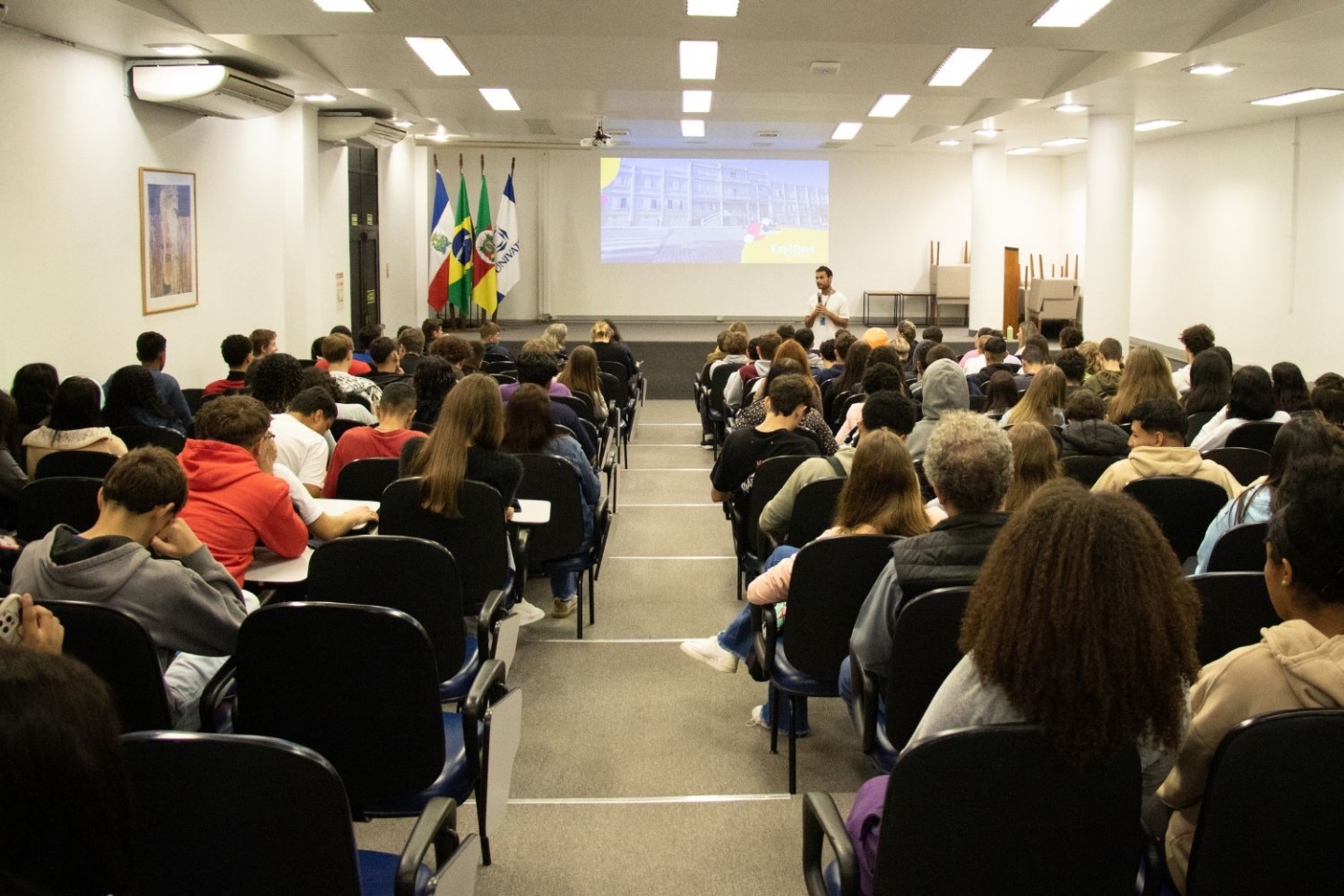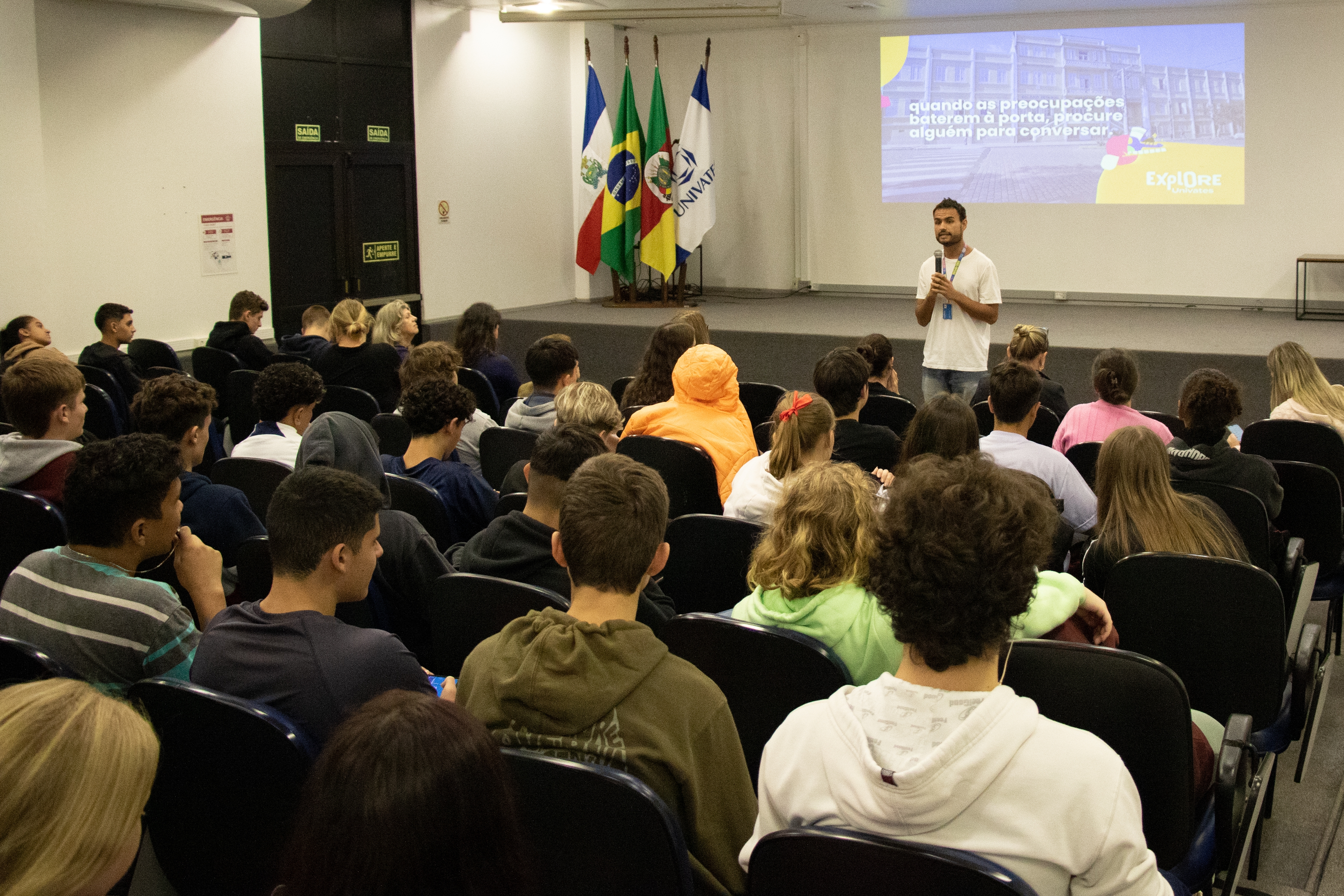 A Universidade do Vale do Taquari - Univates, por meio do programa Explore, em parceria com o Colégio Estadual Presidente Castelo Branco, estará realizando, até o dia 24 de maio, atividades de acolhimento para os estudantes que retornam às aulas após um período de interrupção devido às enchentes que afetaram a região. As atividades iniciaram nesta quarta-feira, 22 de maio, com os alunos do 1º ano do Ensino Médio, que foram recebidos no auditório do Prédio 11 da Univates.