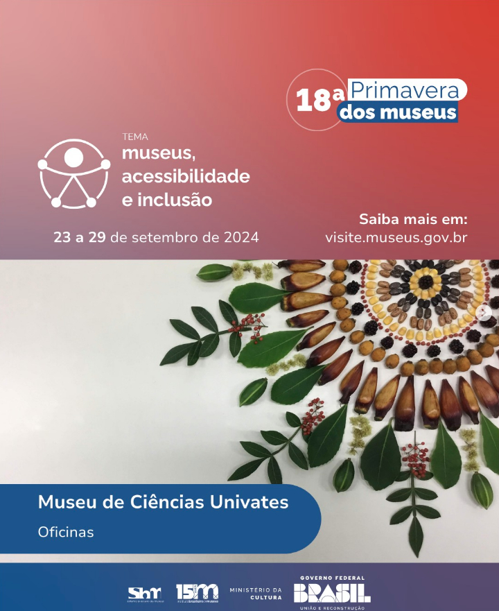 O Museu de Ciências Univates participará da programação da 18ª edição da Primavera dos Museus com uma oficina gratuita aberta à comunidade. A atividade “Construindo Mandalas com elementos da natureza” acontecerá no dia 24 de setembro, às 9h e às 15h. O objetivo da oficina é proporcionar um momento de conexão com a natureza para os participantes.
