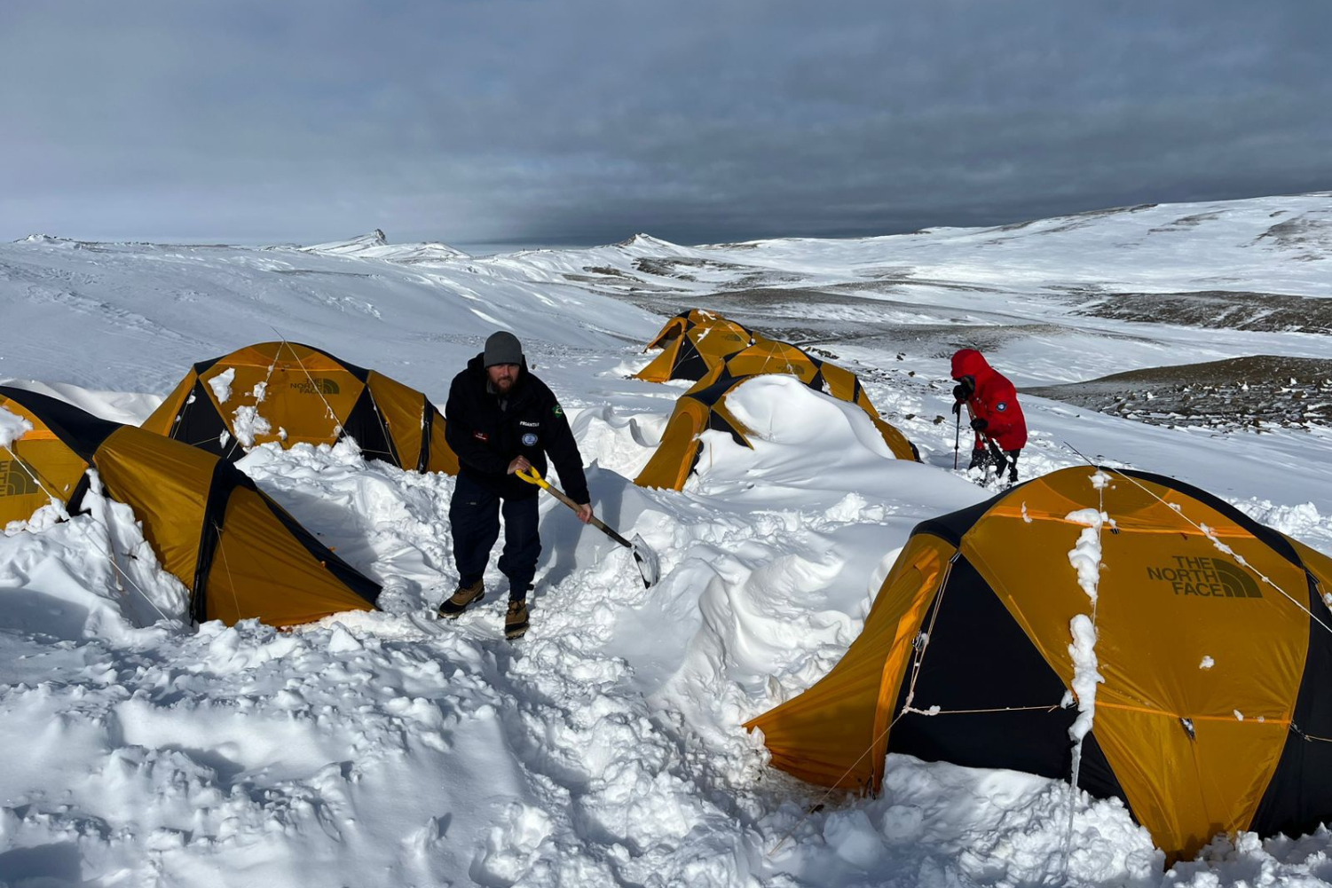 Me preparei como pude pra abandonar a barraca em caso de emergência. Mal sabia eu que, dois dias depois ao sair da barraca, as “casas” vizinhas viraram verdadeiros iglus, e que a minha na verdade era a menos pior das 3 barracas que ficavam na linha do vento. Um dia inteiro de trabalho para resgatar colegas soterrados (seria essa palavra usada também para neve?), não sem muita foto e muita risada. Apesar dos pesares, todas as barracas ficaram de pé, e os acampantes, bem. Teríamos uma janela meteorológica de dois dias para aproveitar organizar o que precisávamos para o nosso resgate cada vez mais próximo.
