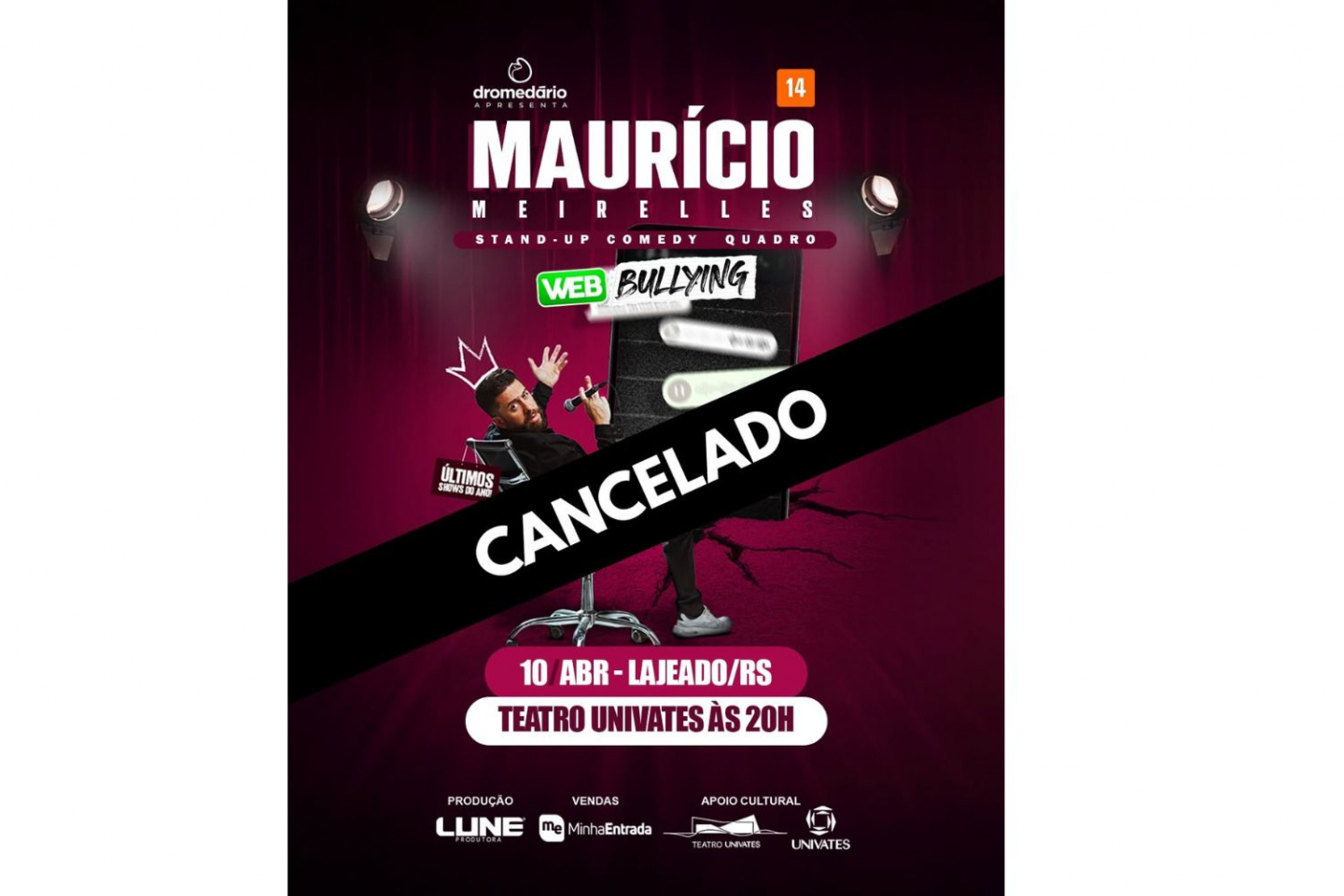 O Teatro da Universidade do Vale do Taquari - Univates informa que o espetáculo “Web Bullying - Geração Z”, com o humorista Maurício Meirelles, foi cancelado. O evento, que aconteceria no dia 10 de abril, estava sendo organizado pela Lune Produções. A venda de ingressos ocorria pelo site Minha Entrada.
