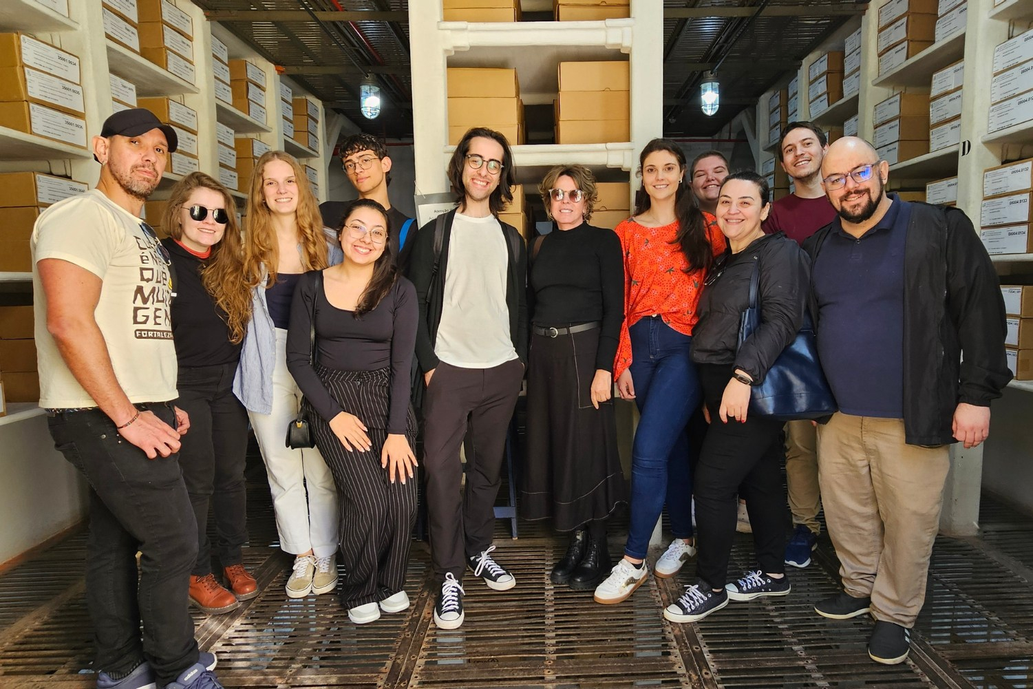 Durante a visita ao Arquivo Público, os integrantes do Brocantes conheceram a estrutura da instituição, seus prédios históricos e os procedimentos técnicos de conservação, classificação e difusão documental. O encontro permitiu comparar metodologias e refletir sobre os desafios de constituir, em âmbito universitário, um repositório de memória escolar inspirado nas melhores práticas arquivísticas.