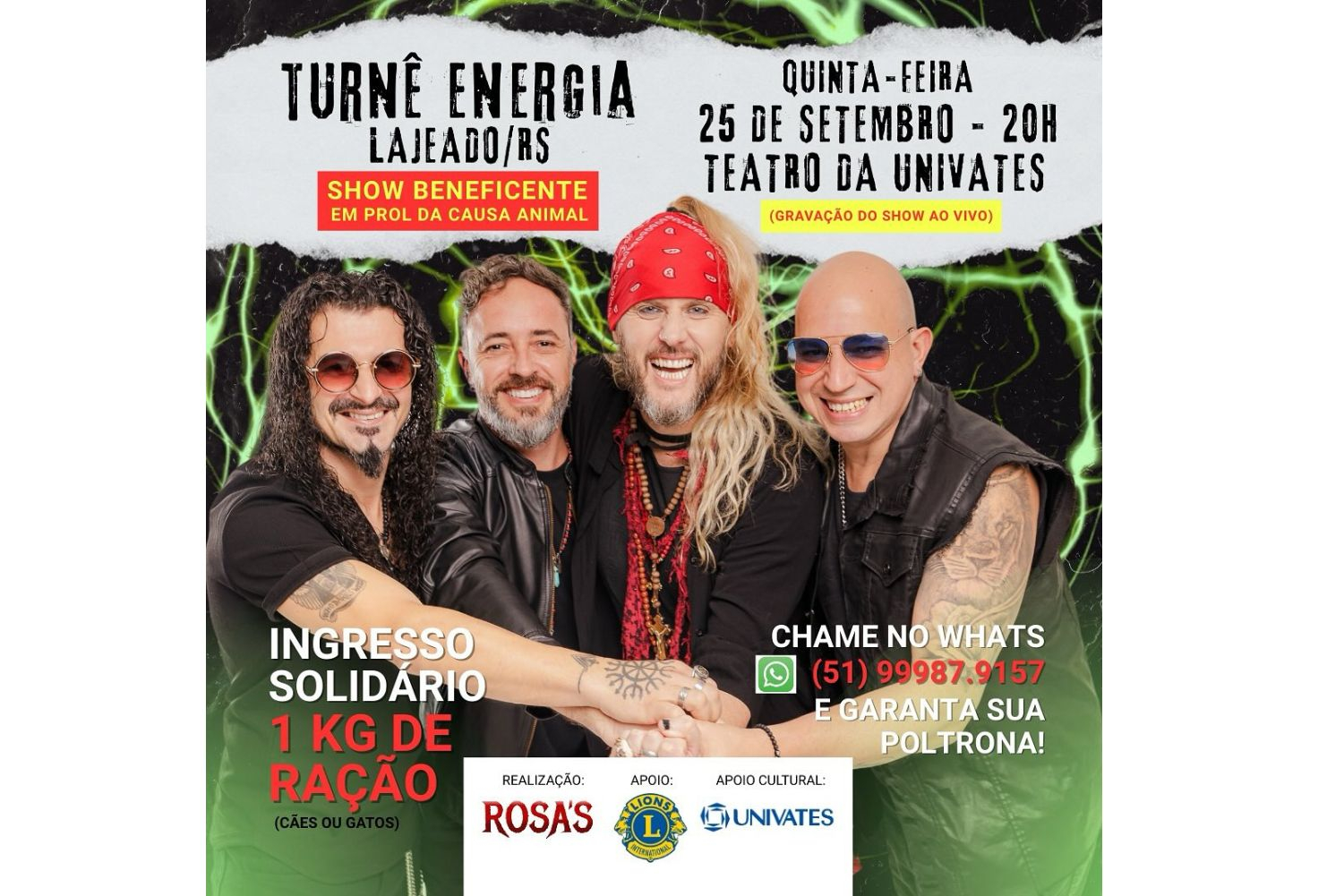 O grupo realiza uma ação solidária a cada novo projeto que inicia. No lançamento da Turnê Energia, o objetivo é arrecadar uma tonelada de ração para ajudar entidades de proteção e cuidado animal do Vale do Taquari. O espetáculo será gravado e poderá ser conferido posteriormente nas redes sociais da Banda.