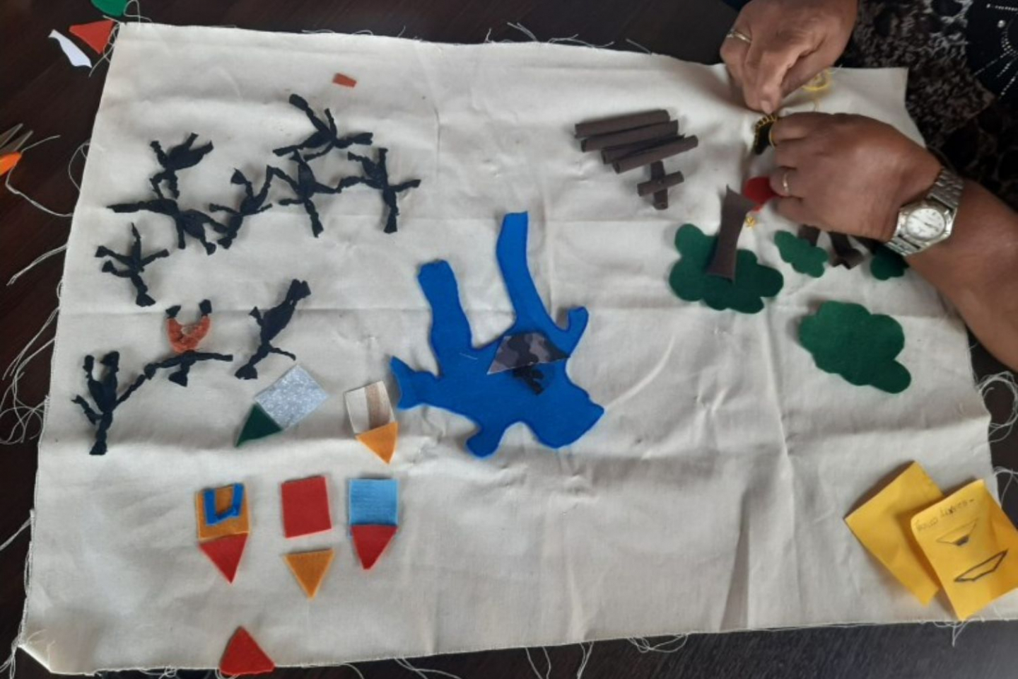 “Arpillera” é o nome de uma técnica têxtil que surgiu no Chile na década de 1960. Durante o regime ditatorial de Augusto Pinochet, essa prática foi adotada por mulheres como forma de resistência política e denúncia das violações de direitos humanos. Em espanhol, a palavra “arpillera” significa “juta”, tecido que serviu de base para a confecção de peças costuradas e bordadas à mão.