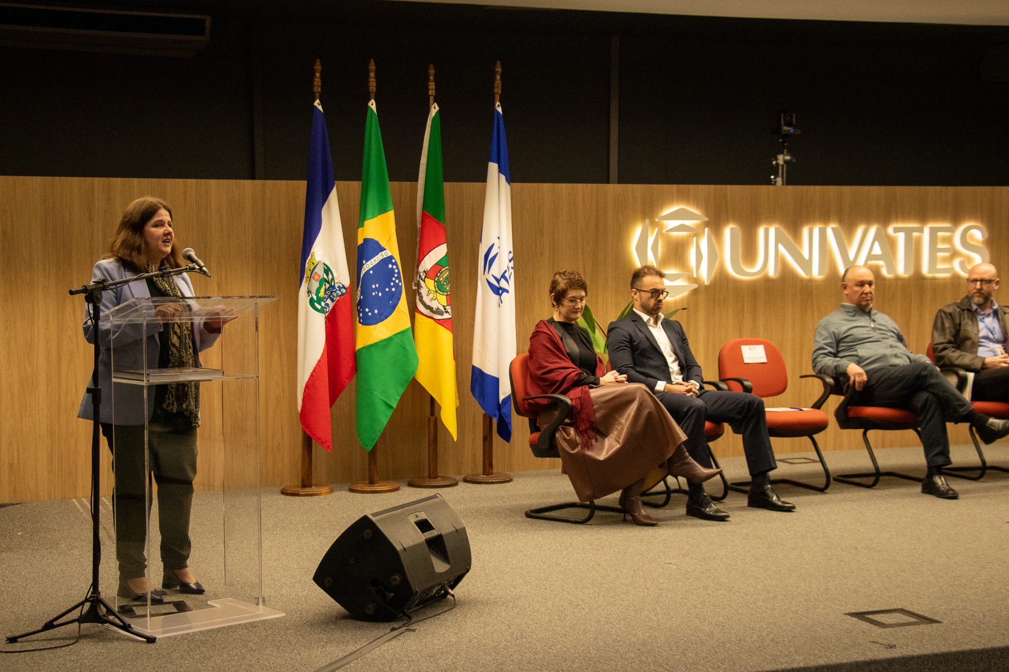 No mesmo tom, Cíntia Agostini, vice-reitora da Univates e presidente do Conselho de Desenvolvimento do Vale do Taquari (Codevat), relembrou o marco de dois anos da inundação de setembro de 2023 na região e seus impactos ambientais, econômicos e sociais. Cíntia enfatizou a necessidade de ações proporcionais à magnitude do evento e a importância do crescimento sustentável, da transição tecnológica e da sustentabilidade em diversos setores, debatendo as demandas das regiões e buscando soluções concretas para o futuro.