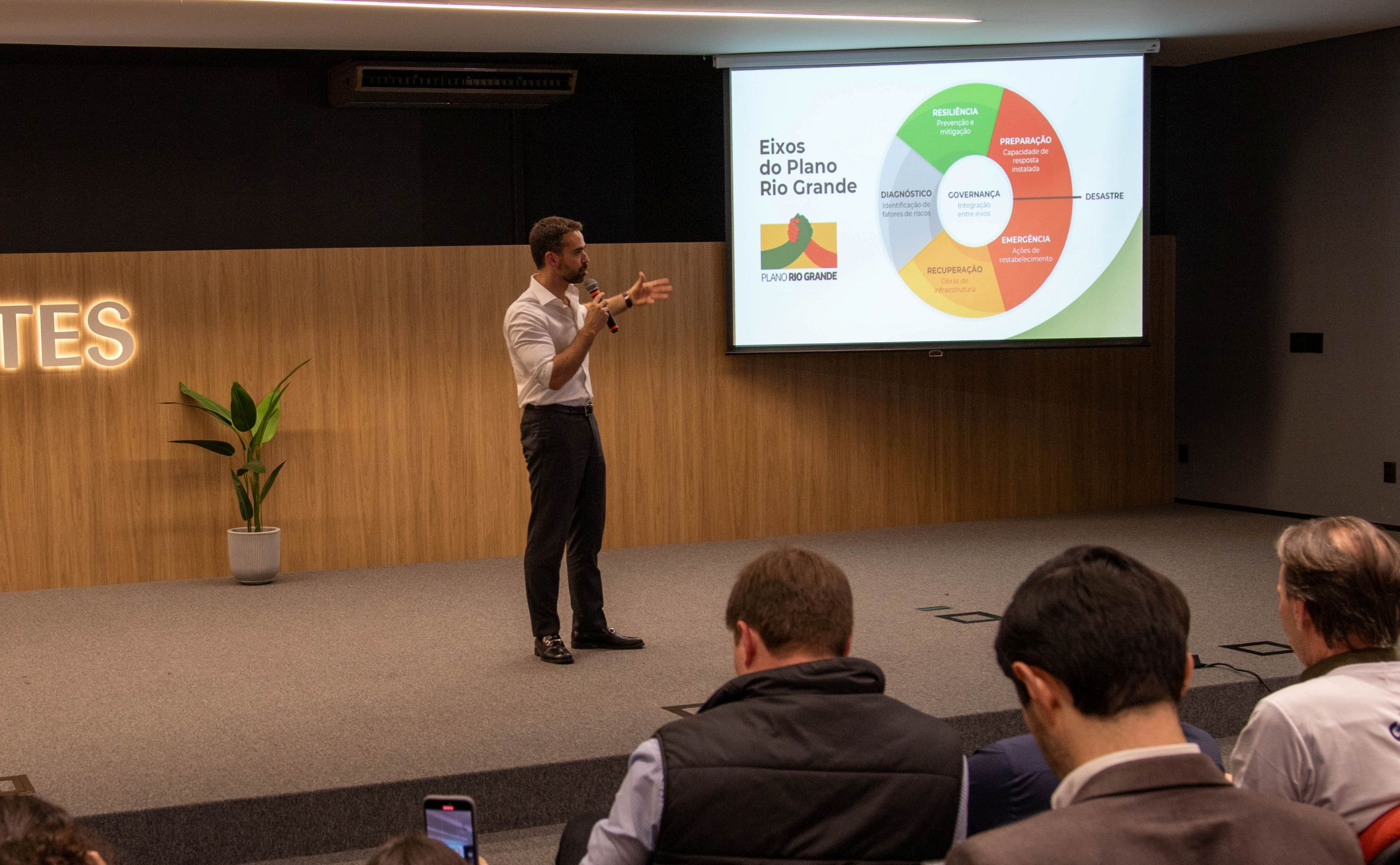 No evento, Leite também apresentou ações desenvolvidas para reconstrução e mitigação da vulnerabilidade climática no Estado.