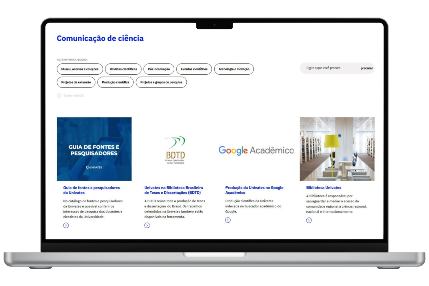 Ponto de convergência para diversas iniciativas científicas e culturais da Univates. Ele incluirá seções como: