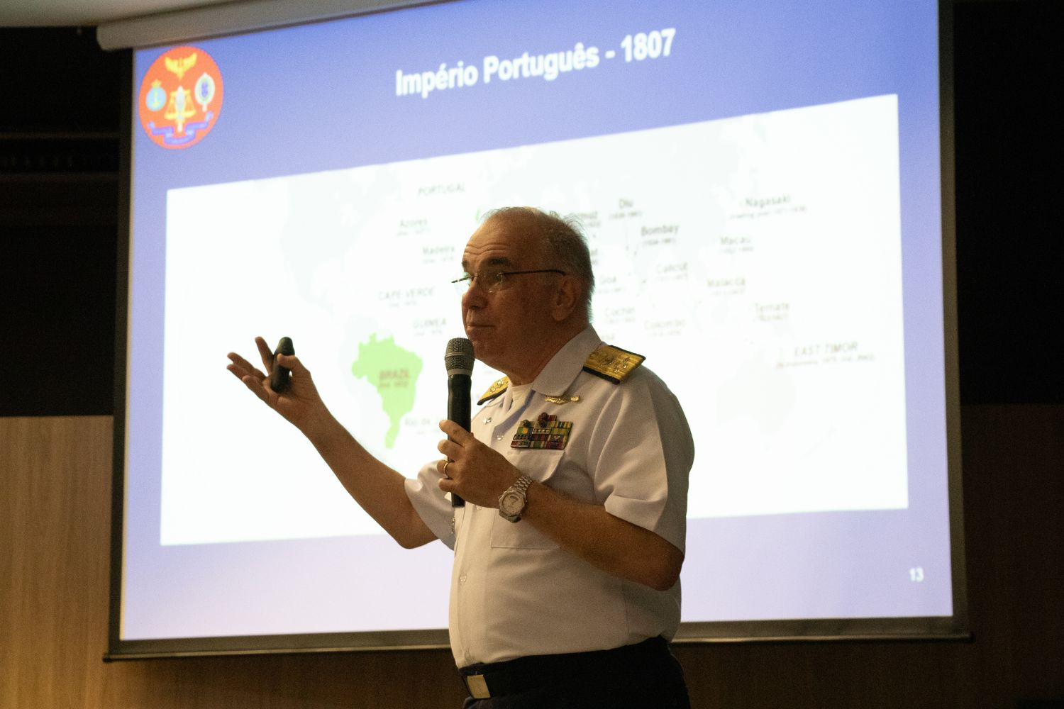 Na sequência, teve início a palestra conduzida pelo ministro do Superior Tribunal Militar (STM), Almirante de Esquadra Leonardo Puntel. Durante sua exposição, o ministro apresentou a evolução histórica da Justiça Militar no Brasil, desde o período imperial até os dias atuais, e explicou o funcionamento do STM, suas duas instâncias, composição e principais atribuições. Também abordou o papel da Justiça Militar na manutenção da hierarquia e disciplina no exercício das funções militares, além das modernizações que vêm sendo implementadas. Segundo ele, o STM julga, em média, 1.000 processos por ano.