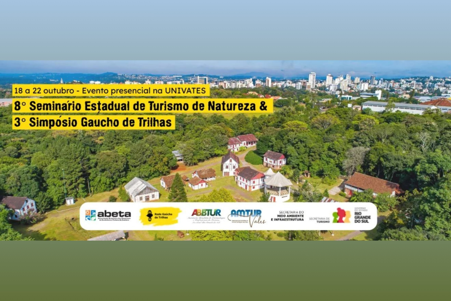 O 8º Seminário de Turismo de Natureza e 3º Simpósio Gaúcho de Trilhas de Longo Curso é uma realização da Associação Brasileira de Turismólogos e Profissionais do Turismo (ABBTUR RS), Rede Brasileira de Trilhas, da Rede Gaúcha de Trilhas e da Associação Brasileira das Empresas de Ecoturismo e Turismo de Aventura (ABETA) e conta com o apoio da Associação dos Municípios de Turismo da Região dos Vales (Amturvales), Governo de Lajeado e Secretaria Estadual do Meio Ambiente e Infraestrutura.