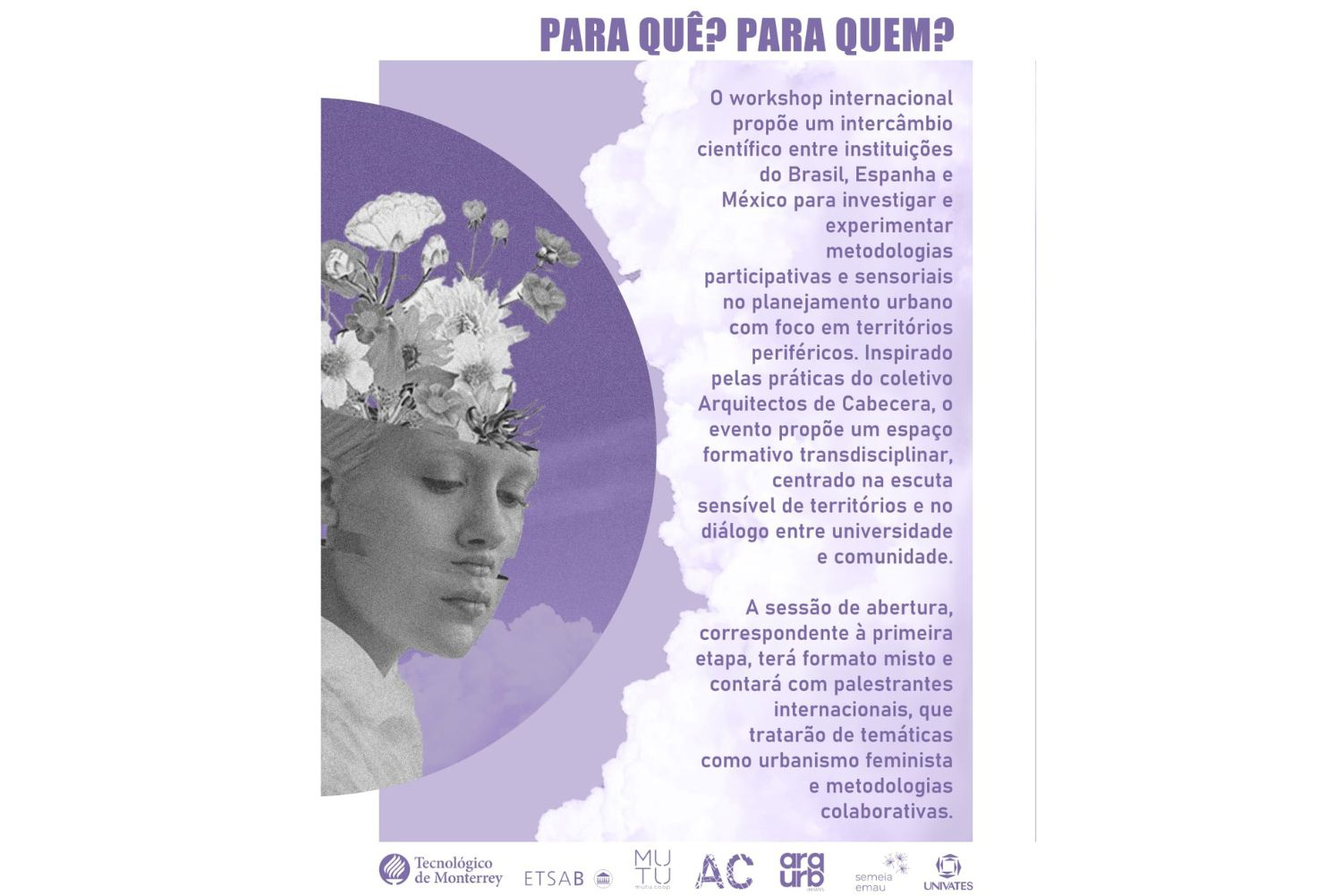Inspirado pelas práticas do coletivo Arquitectos de Cabeceira, de Barcelona, o evento promoverá um espaço formativo transdisciplinar, centrado na escuta sensível de realidades periféricas e no diálogo entre universidade e comunidade. Será uma oportunidade para todos aprenderem sobre urbanismo feminista e metodologias colaborativas.