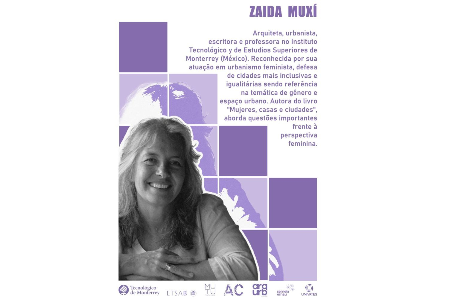 Zaida Muxí é arquiteta e urbanista, escritora e professora no Instituto Tecnológico y de Estudios Superiores de Monterrey (México). É reconhecida por sua atuação em urbanismo feminista e defesa de cidades mais inclusivas e igualitárias, sendo referência na temática de gênero e espaço urbano. Zaida palestrará presencialmente na Univates.