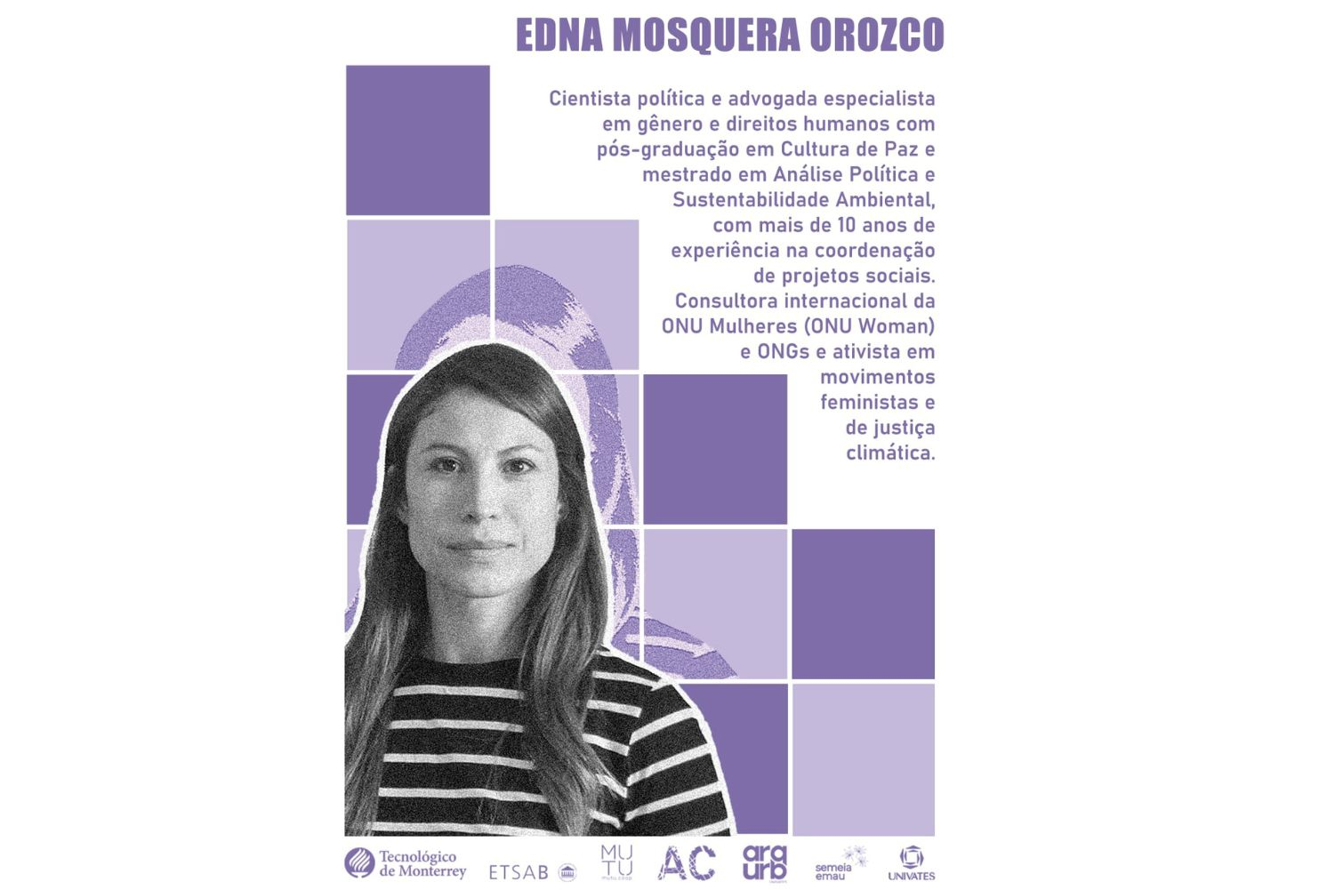 Edna Mosquera Orozco é cientista política e advogada especialista em gênero e direitos humanos. Tem mais de 10 anos de experiência na coordenação de projetos sociais. Atualmente, é consultora internacional da ONU Mulheres e ativista em movimentos feministas e de justiça climática. A palestra de Edna ocorrerá no formato virtual.
