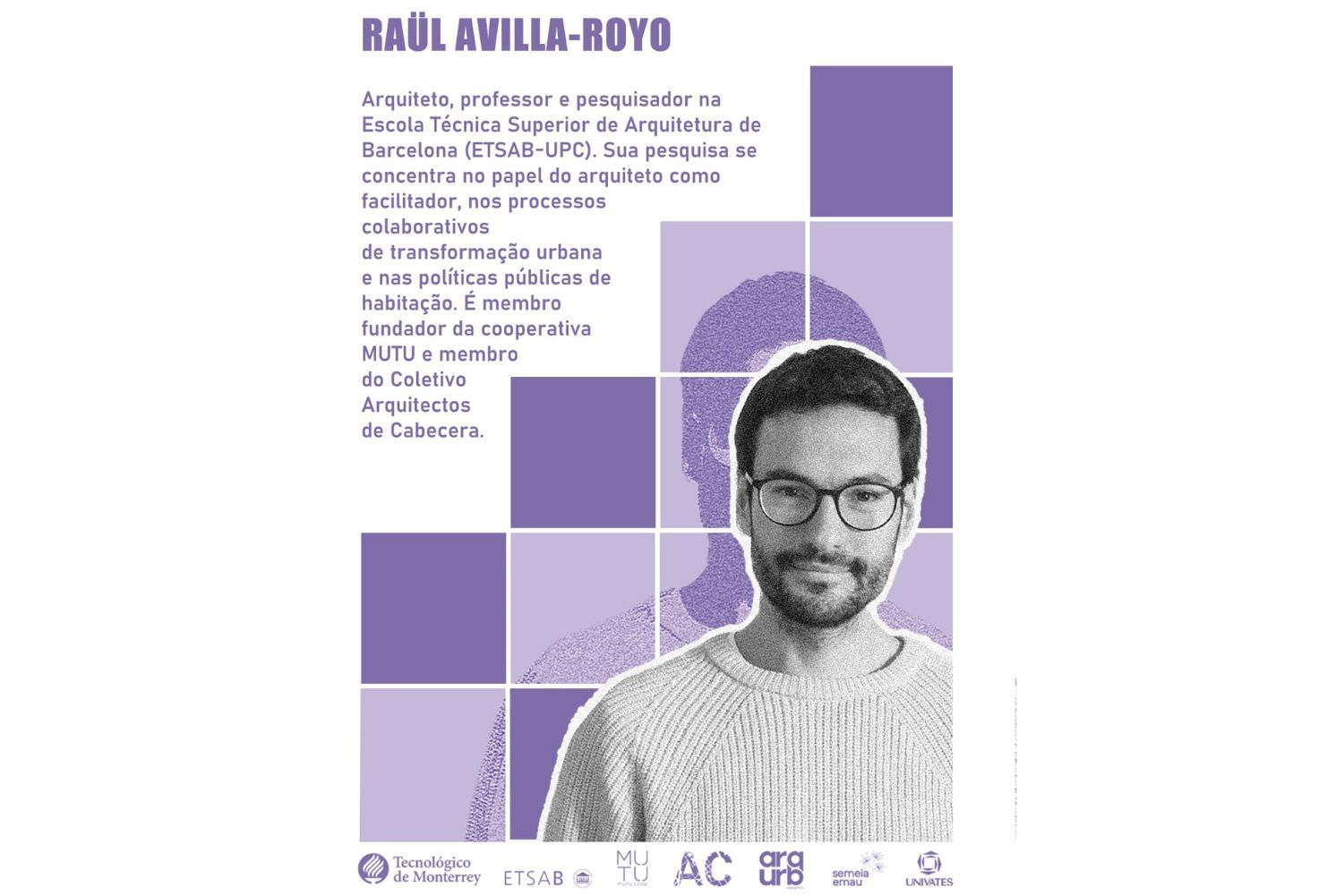 Raül Avilla-Royo é arquiteto, professor e pesquisador na Escola Técnica Superior de Arquitetura de Barcelona (ETSAB-UPC). Membro fundador da cooperativa MUTU e membro do coletivo Arquitectos de Cabeceira, realiza pesquisas sobre o papel do arquiteto como facilitador nos processos colaborativos e de transformação urbana e na formulação de políticas públicas de habitação. A palestra de Avilla-Royo ocorrerá no formato virtual.