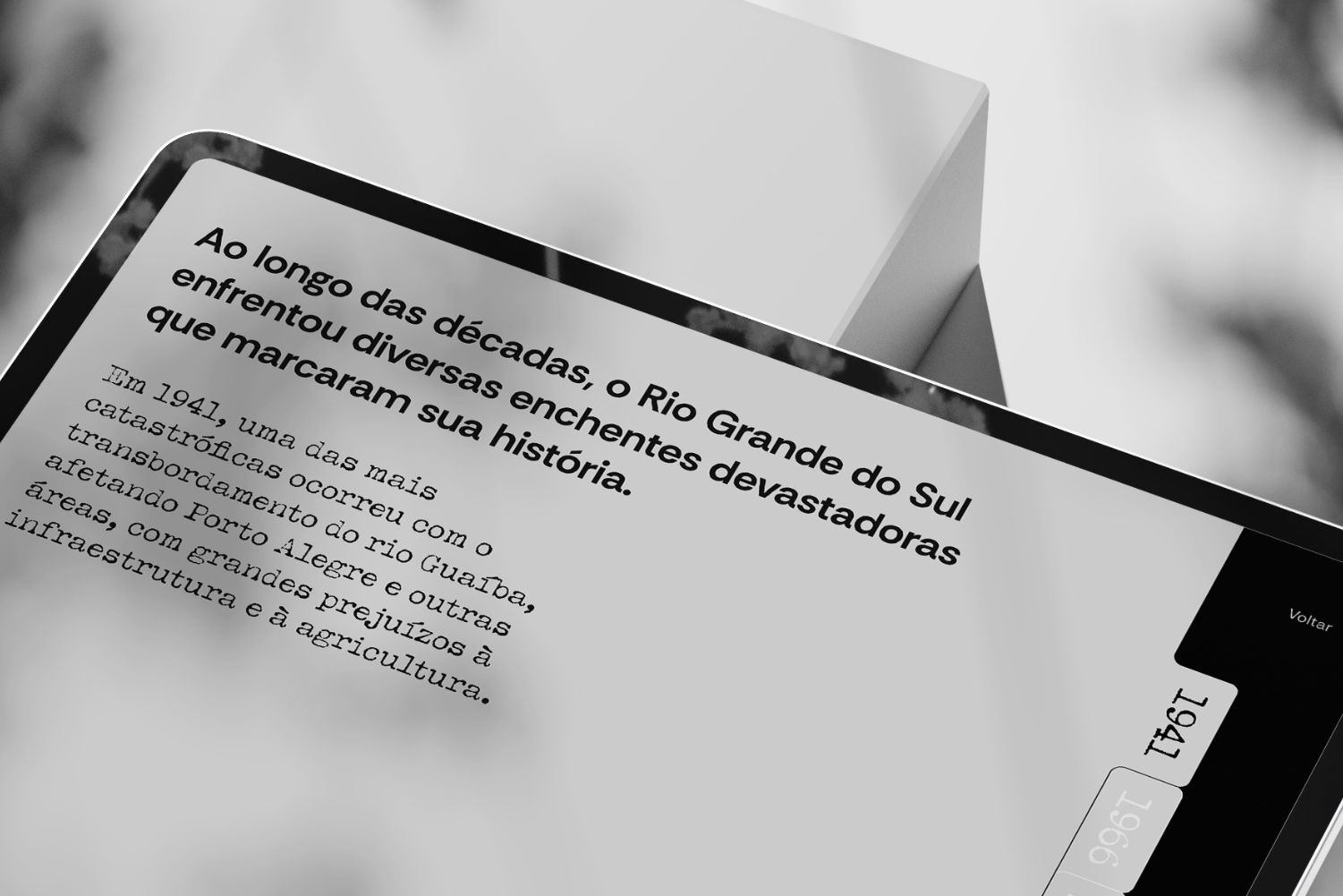 A partir dessa origem pessoal, desenvolvi uma breve recapitulação histórica das enchentes no Rio Grande do Sul, refletindo sobre quem eram as pessoas invisibilizadas por esses eventos e como os dias se desdobraram durante a tragédia. Assim, este TCC se constrói não apenas como um projeto, mas também como um artefato de memória coletiva.