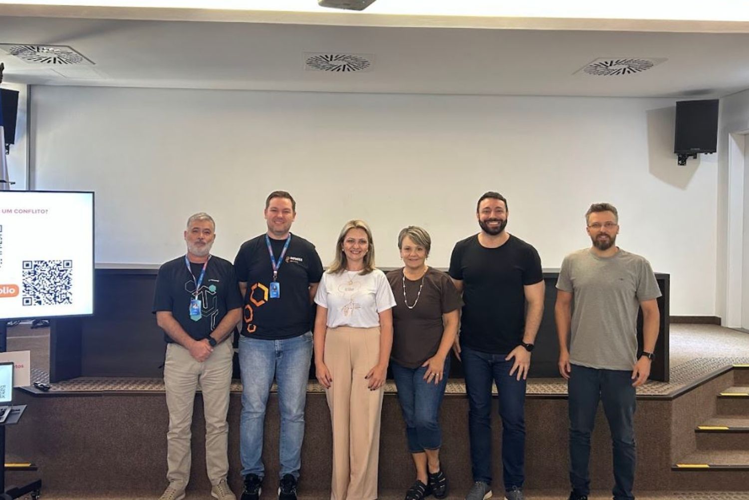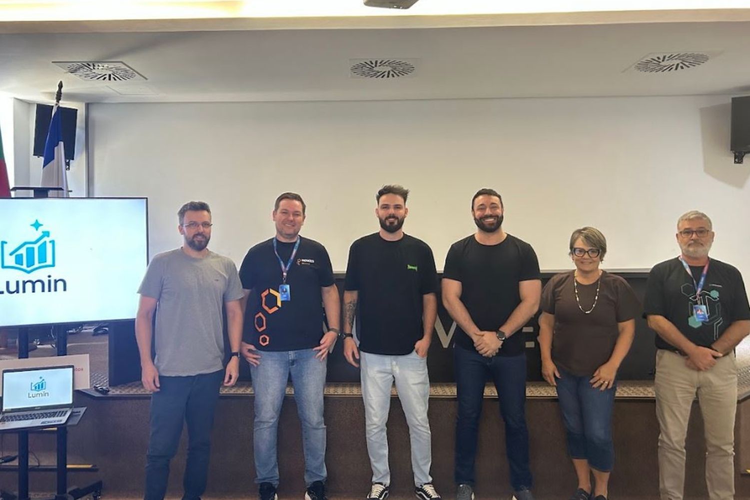 A avaliação ficou a cargo de profissionais com atuação estratégica nos setores de inovação, tecnologia, educação e desenvolvimento regional. No primeiro dia, compuseram a banca Cristiani Reimers, gerente administrativa do Tecnovates – Parque Científico e Tecnológico do Vale do Taquari; Grasiela Kieling Bublitz, coordenadora do Centro de Educação Profissional da Univates; Jairo Luis Valandro, representante da Secretaria do Desenvolvimento Econômico, Inovação e Agricultura de Lajeado; Luciano Brandão, sócio das empresas RETTA TI e Demander – Força de Vendas; e Michel Machado, coordenador da Inovates.