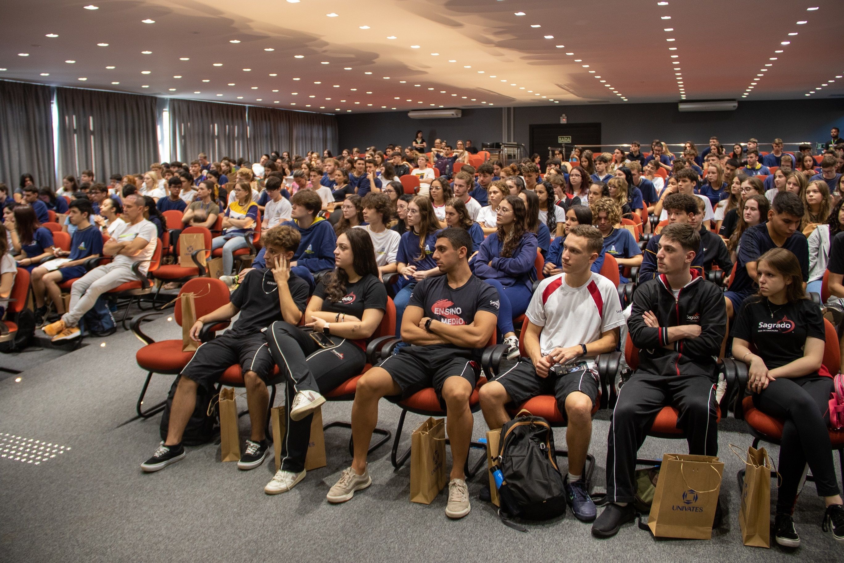 Cerca de 230 alunos do Ensino Médio de escolas dos Vales do Taquari e Rio Pardo e da Serra participaram da programação “Estalo: desperte habilidades”, na manhã de terça-feira, 11, no campus da Universidade do Vale do Taquari - Univates em Lajeado. Eles foram recepcionados no auditório do Prédio 7, onde receberam um kit de boas-vindas e depois seguiram para as atividades nas salas de aula e laboratórios.