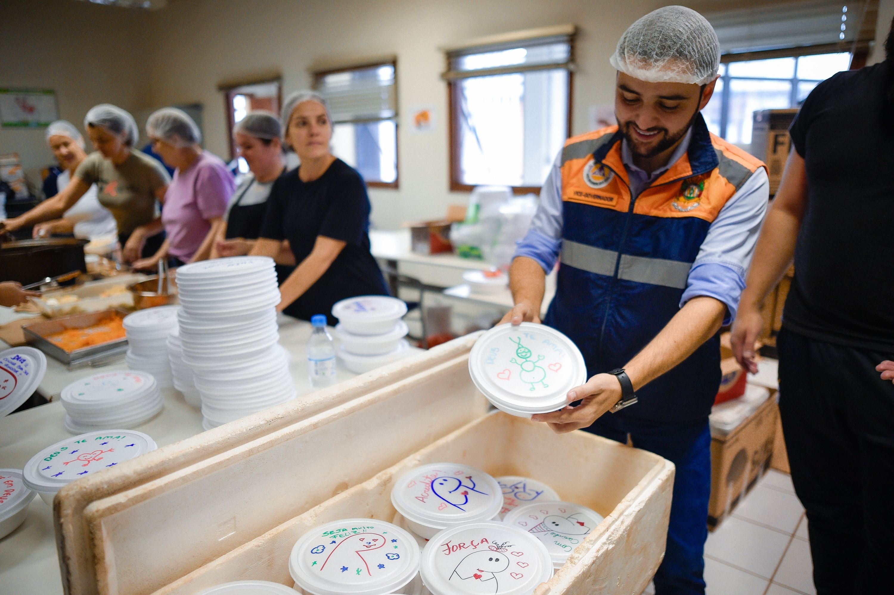 O compromisso na universidade se encerrou com uma visita às instalações da cozinha, onde funcionários e voluntários têm preparado mais de 1000 refeições todos os dias. Além de preparar e montar as marmitas, a equipe tem tido um zelo especial ao personalizar as embalagens com recados e desenhos. O vice-governador também deixou sua mensagem de apoio e conforto.