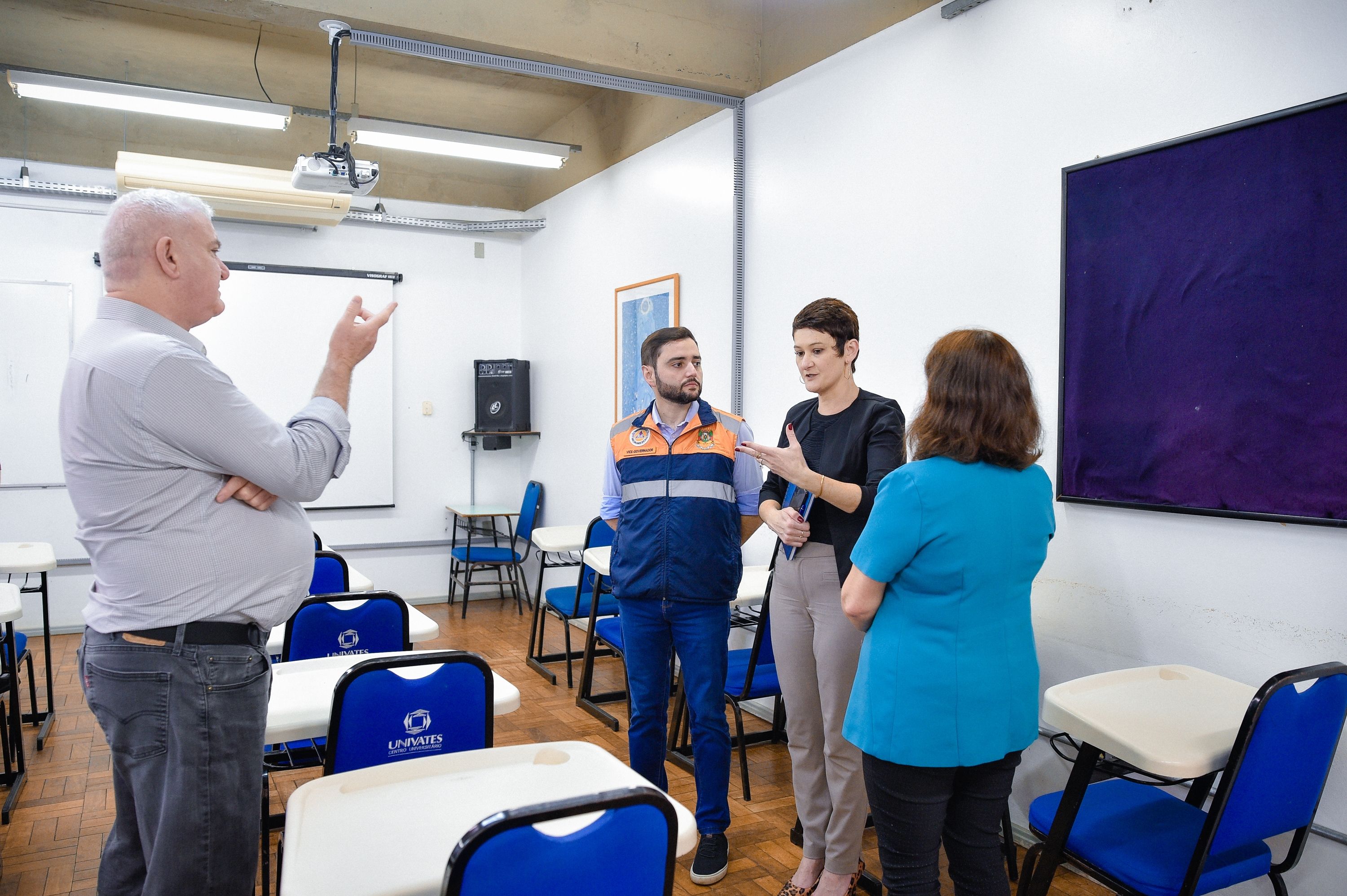 As aulas serão retomadas na segunda-feira (25/09), após a ação da força-tarefa estadual na normalização da situação no Vale do Taquari. A visita às salas de aula dos Prédios 3 e 7 foi guiada pela reitora da Univates, Evania Schneider, e pelo presidente da Fundação Univates, Ney José Lazzari.