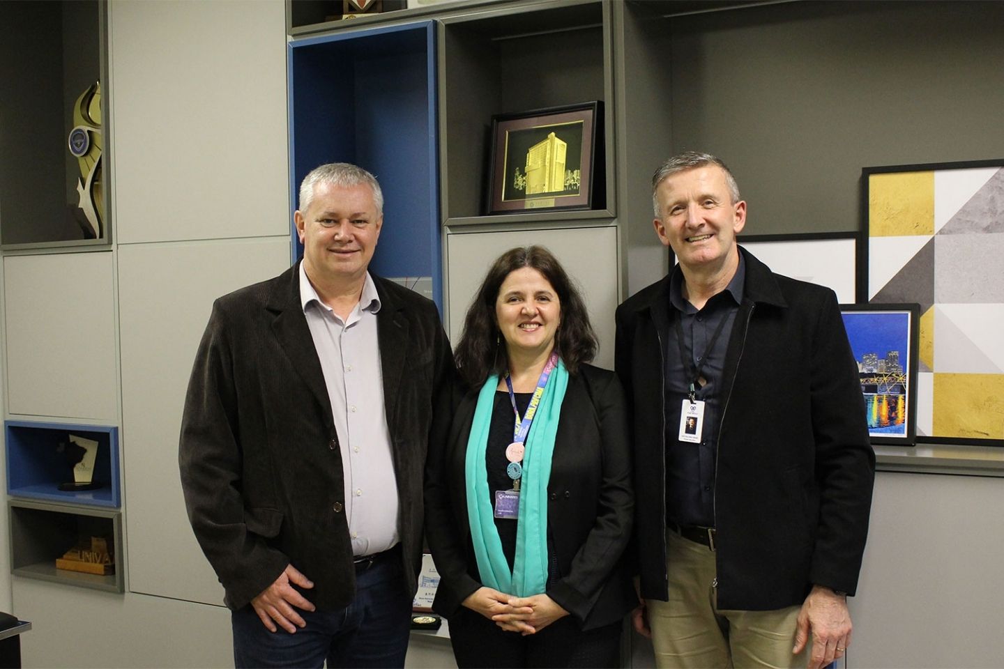 O presidente da Associação Beneficente Ouro Branco (ABOB), Marco Aurélio Weber, e o diretor executivo do Hospital Ouro Branco (HOB), José Paulinho Brand, se reuniram nesta segunda-feira, 25 de setembro, com a reitora da Universidade do Vale do Taquari - Univates, professora Evania Schneider.