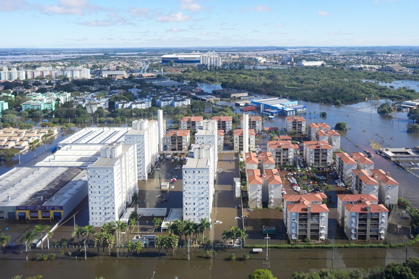 Na imagem aérea, vista de parte da região metropolitana e da capital do RS, Porto Alegre, áreas afetadas pelos eventos climáticos recentes