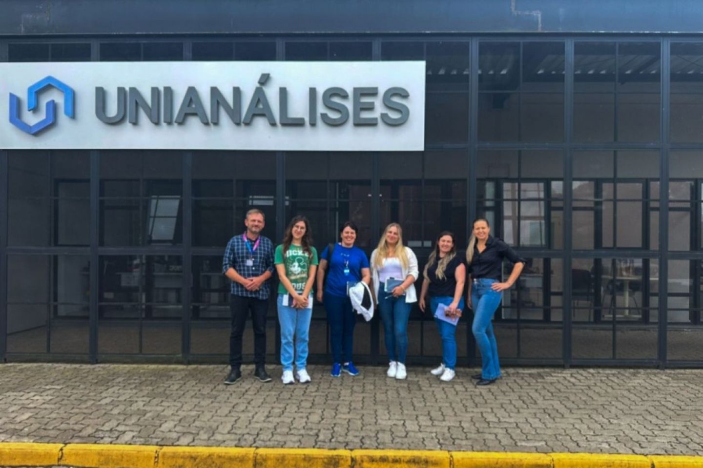 Recepcionadas pelas responsáveis técnicas Tainá Drebes (da área de microbiologia), Vanessa Lardini (da área de físico-química), pela coordenadora do setor de Recebimento, Maria Cristina Dallazen, e pelo coordenador comercial, Luciano Willy Schiefferdecker, as visitantes aprofundaram conhecimentos sobre processos laboratoriais essenciais.