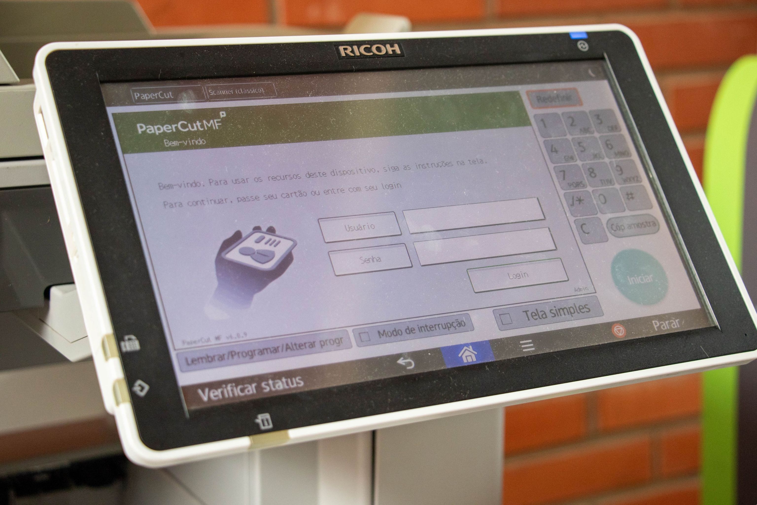 Os documentos enviados para o sistema ficam retidos na nuvem e podem ser impressos em qualquer totem de autoatendimento localizado no campus. O valor será descontado do saldo do usuário quando a impressão for efetuada. Para confirmar a impressão, é necessário digitar o código institucional e senha ou aproximar o cartão institucional no sensor da impressora. Em seguida, tocar em “autorizar” a impressão na tela da impressora.