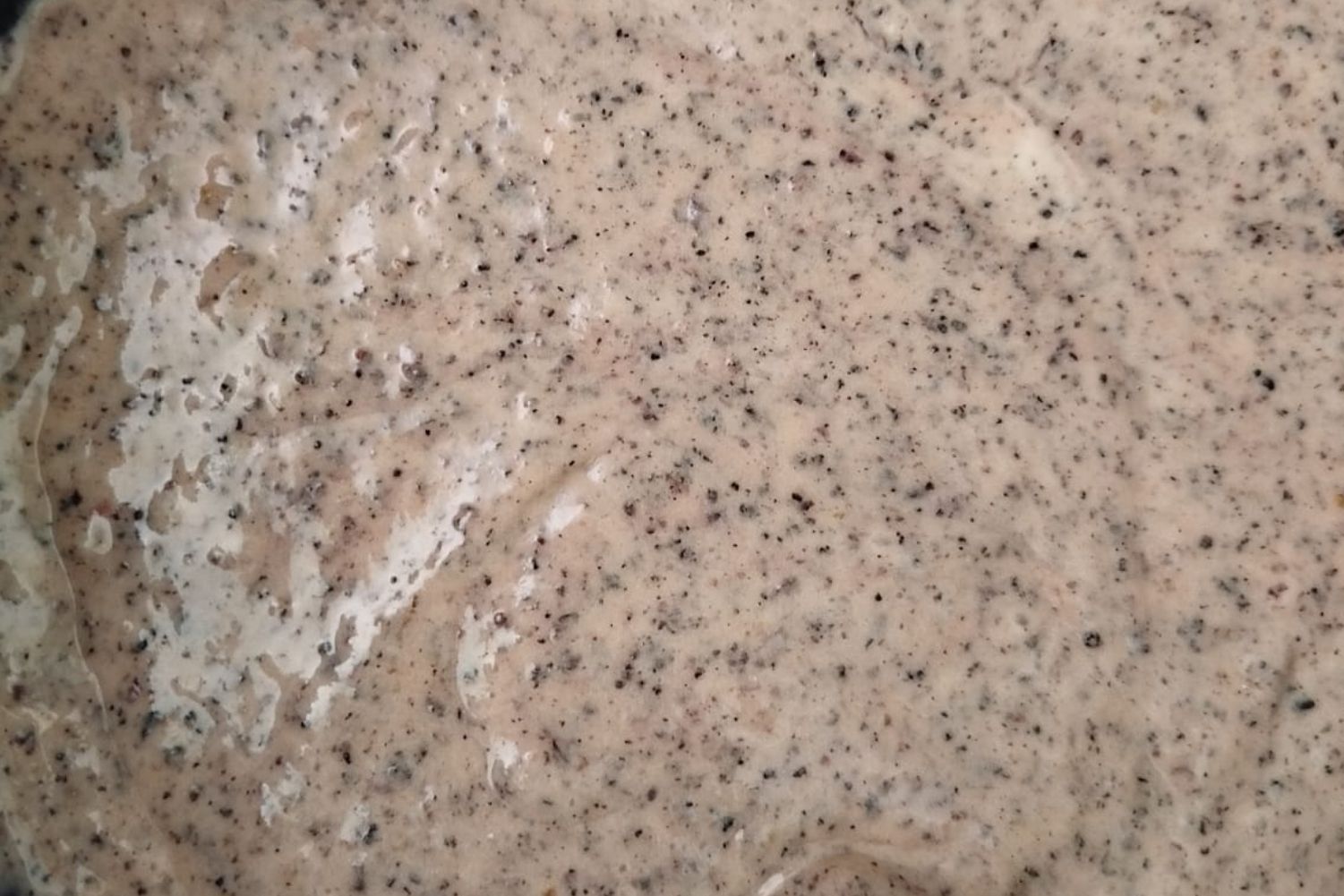 Formulação 1 (F1): substituição de 25% da farinha de trigo por farinha de casca de uva, utilizando 120 g de farinha de casca de uva e 360 g de farinha de trigo;