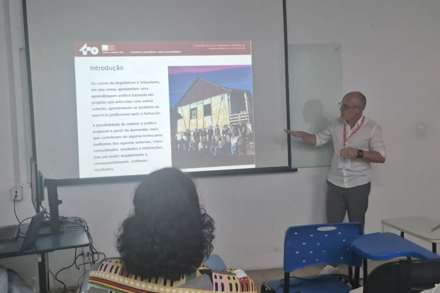 O trabalho apresentado pelo docente mostrou como a extensão está presente no curso desde o seu início, através de parcerias com instituições e administrações públicas, principalmente por intermédio do Escritório Modelo de Arquitetura e Urbanismo (Emau), o Semeia - Emau, como é reconhecido atualmente. Também abordou como foi o processo de capacitação institucional para a extensão até a organização de um projeto pedagógico baseado no aprendizado em atividades práticas que são os Ateliers (currículo Aula+).