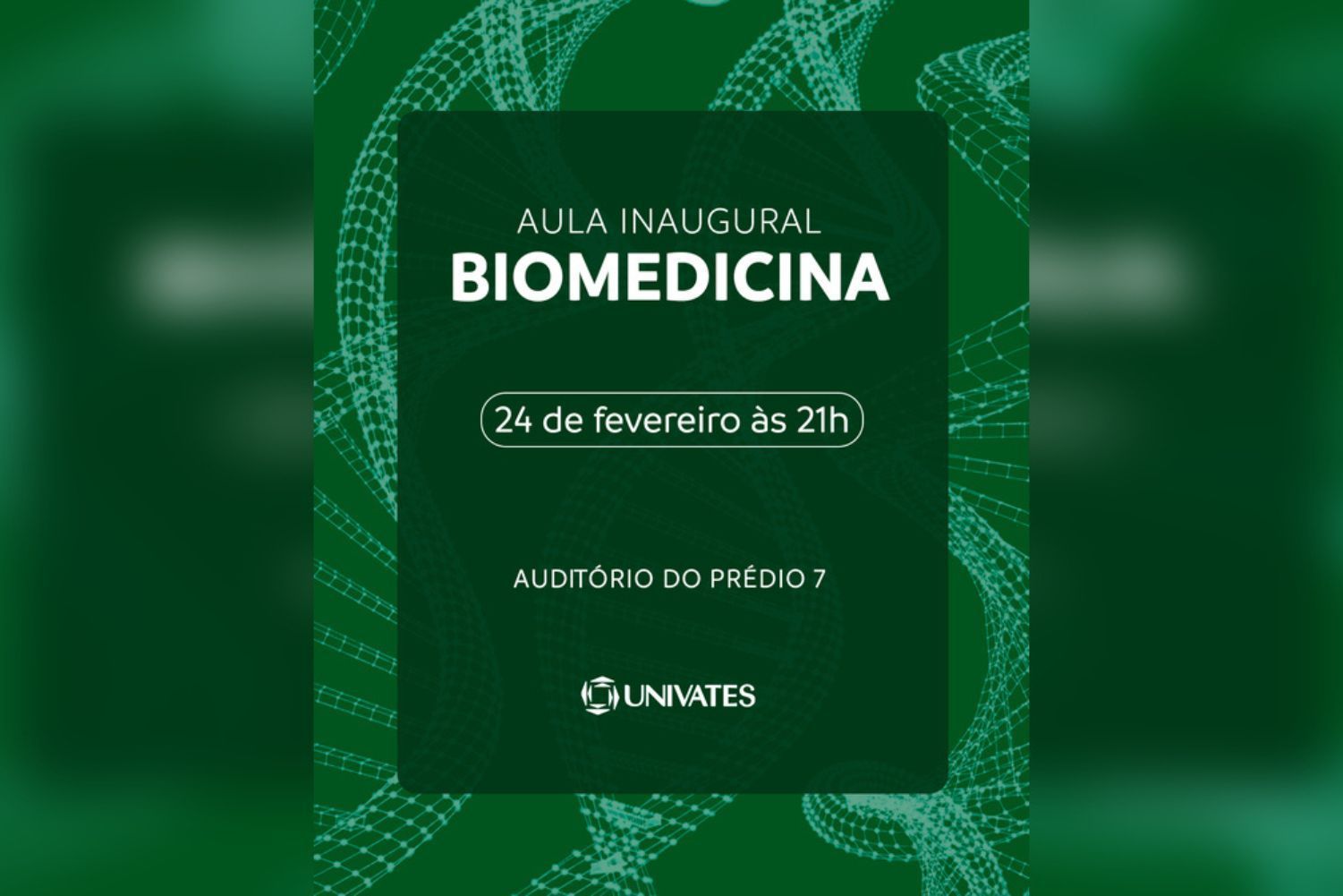A aula inaugural do curso de Biomedicina ocorrerá no dia 24 de fevereiro (terça-feira), das 21h às 22h, no Auditório do Prédio 07 da Univates. O evento apresentará aos alunos o universo científico, ético e profissional da área da saúde, despertando seu interesse pela pesquisa, pelo cuidado com a vida e pelo compromisso com a inovação.