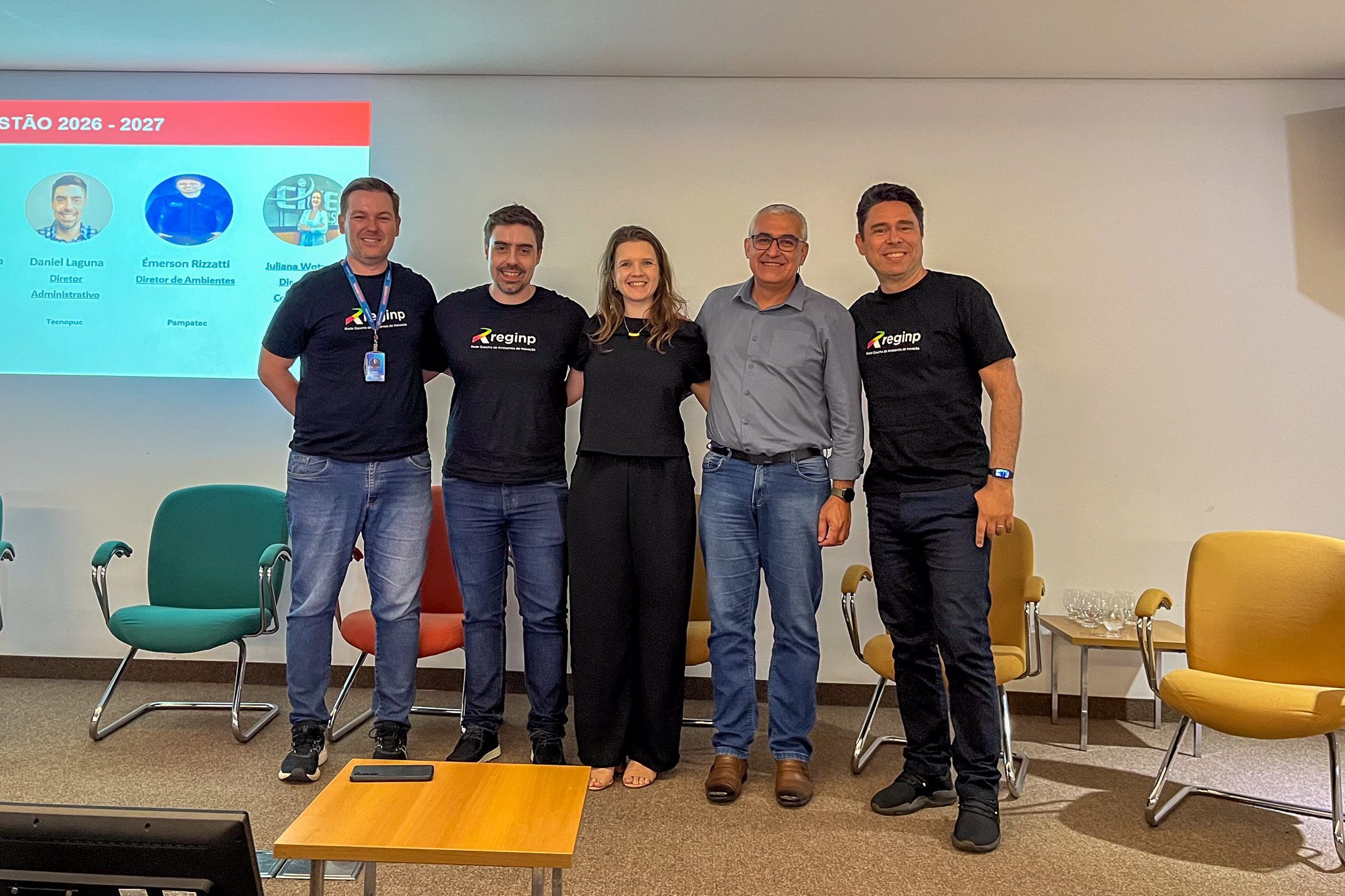 Após visita ao Parque Científico e Tecnológico do Vale do Taquari - Tecnovates e ao Hub Tecno Saúde, foi realizada a assembleia da Rede. Na ocasião, foi eleita a nova diretoria para o biênio 2026-2027. O coordenador da Incubadora Tecnológica da Univates (Inovates), Michel Machado, foi empossado presidente da Reginp. Também integram a diretoria Lisandro Dalla Nora, Daniel Laguna, Émerson Rizzatti e Juliana Wotzasek.