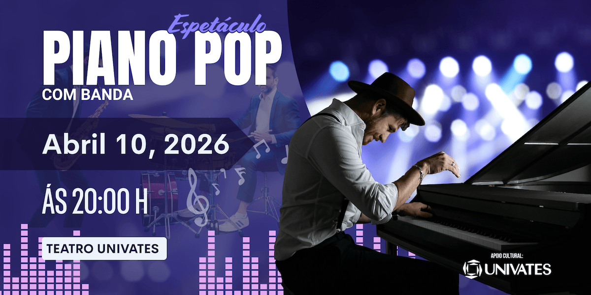 No dia 10 de abril (sexta-feira), às 20h, o Teatro da Universidade do Vale do Taquari - Univates receberá o espetáculo “Piano Pop com Banda”, idealizado por Jonas Martins. O show é uma experiência envolvente, que transforma os maiores sucessos da música pop em versões ao piano. Acompanhado por uma banda vibrante e cheia de energia, Martins faz interpretações marcantes, cria arranjos modernos e proporciona momentos de emoção e animação para o público.