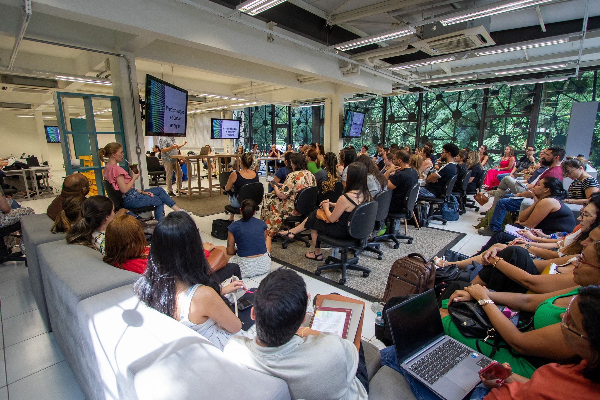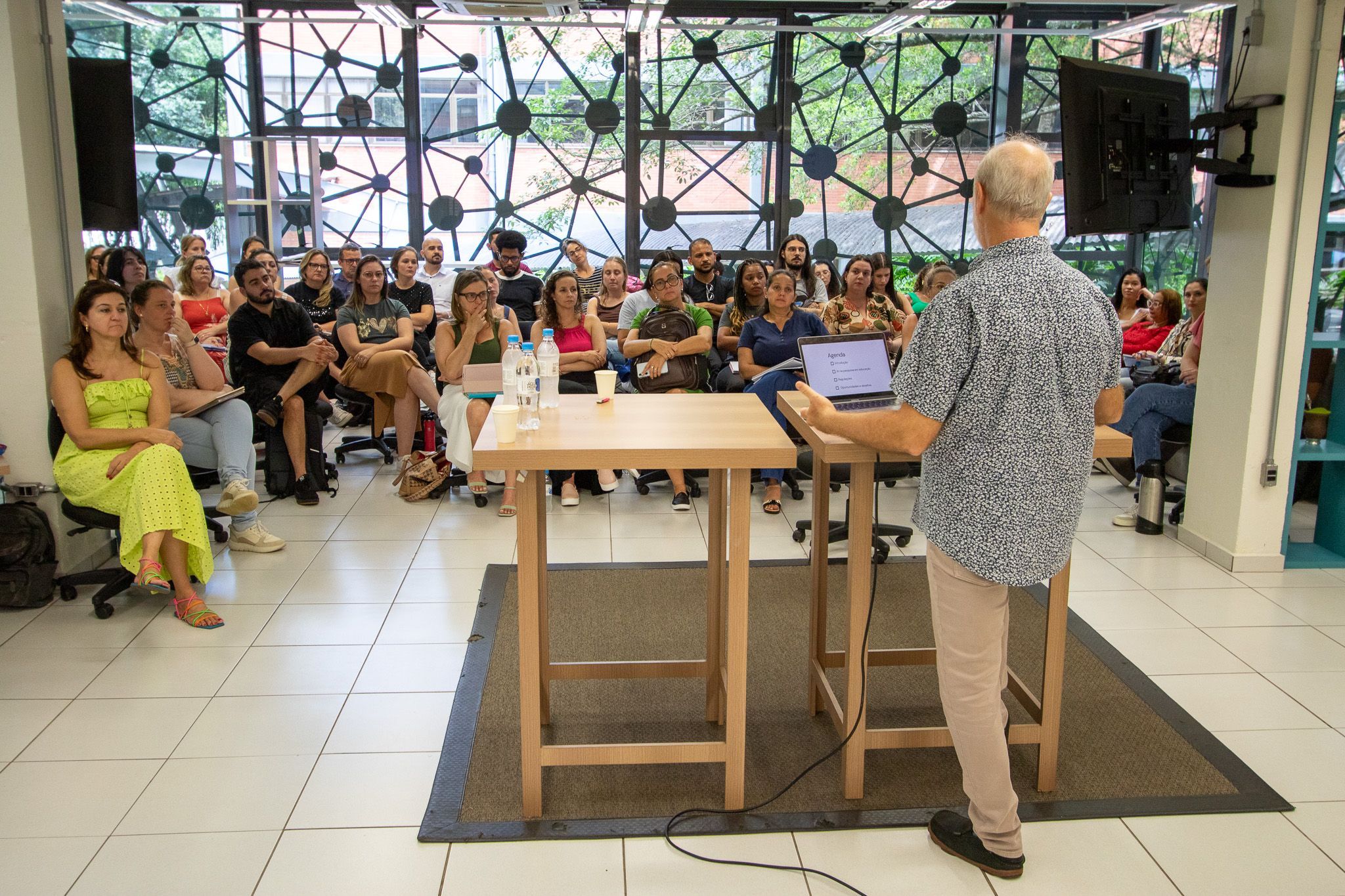 Estudantes dos regimes intensivo e regular dos mestrados e doutorados e docentes acompanharam a palestra na noite de segunda-feira e participaram de um minicurso na tarde de terça-feira. Na palestra, Fischman falou sobre possíveis formas de reconfigurar as pesquisas em ensino e educação para futuros justos e sustentáveis.