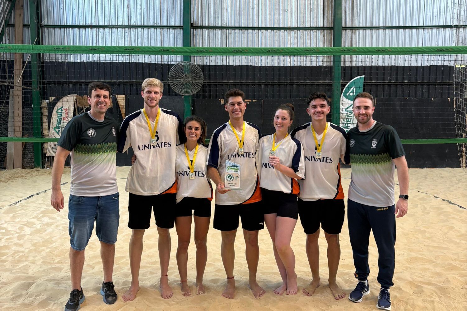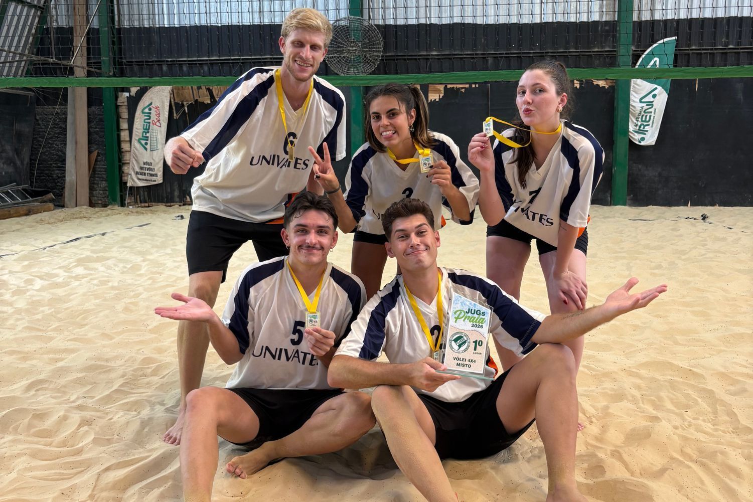 No sábado, dia 21 de março, o time de vôlei da Universidade do Vale do Taquari - Univates sagrou-se campeão dos Jogos Universitários Gaúchos (JUGs) 2026, realizados na cidade de Novo Hamburgo. A equipe de estudantes-atletas, formada por Arthur Arioti (Psicologia), Bruna Luiza Webers (Ciências Contábeis), Messias Heinen Mahle (Direito), Paulo Augusto Friedrich (Educação Física) e Vitória Marques Simonetti (Gestão Financeira), disputou na categoria 4x4, vencendo todas as partidas e se classificando para os Jogos Universitários Brasileiros (JUBs).