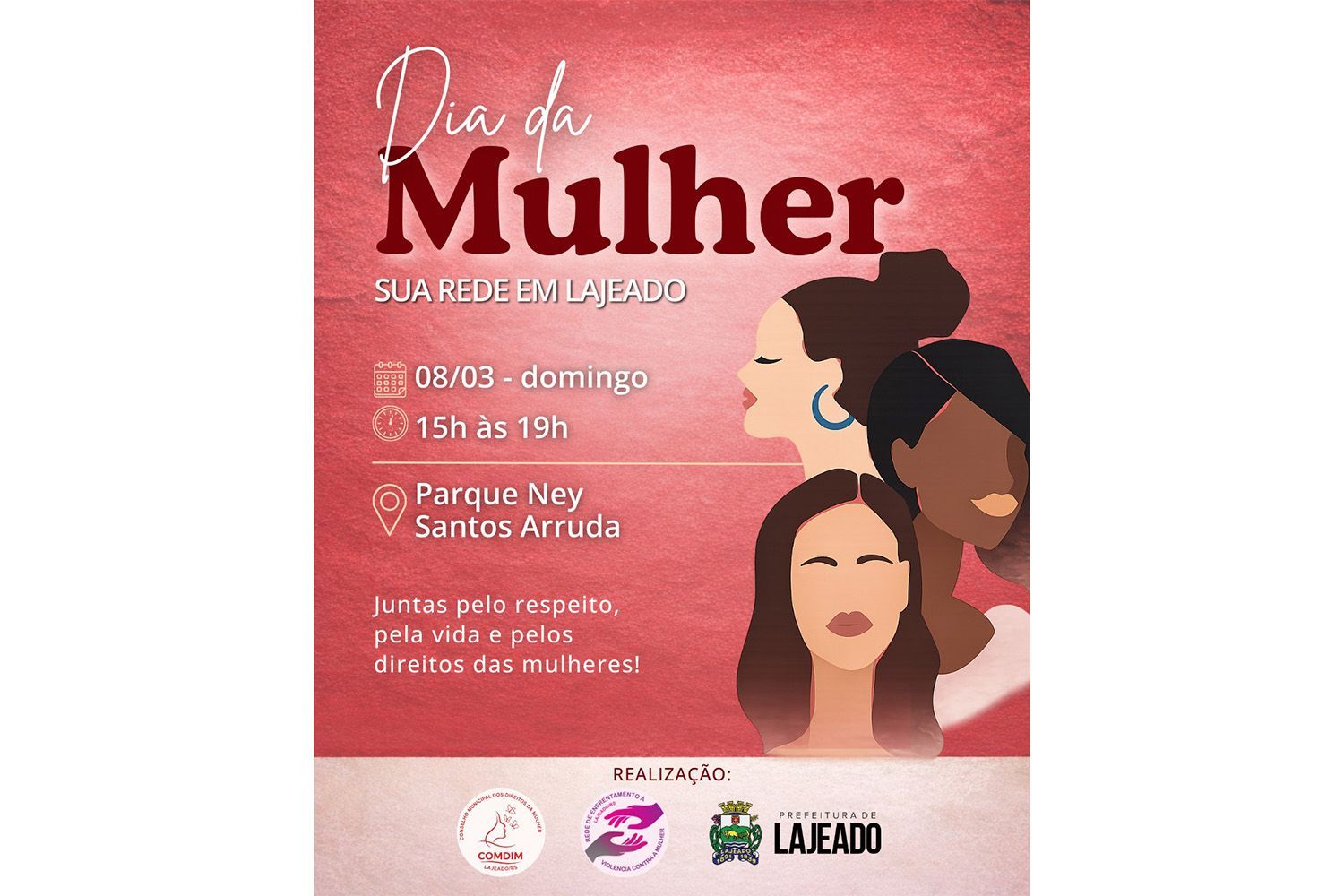 A Universidade do Vale do Taquari - Univates estará presente no evento Dia da Mulher - Sua Rede em Lajeado, organizado pela Prefeitura de Lajeado, por meio da Coordenadoria dos Direitos da Mulher, em parceria com o Conselho Municipal dos Direitos da Mulher (Comdim) e com a Rede de Enfrentamento à Violência contra a Mulher. A programação ocorre no domingo, 8, das 15h às 19h, no Parque Ney Santos Arruda.
